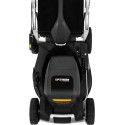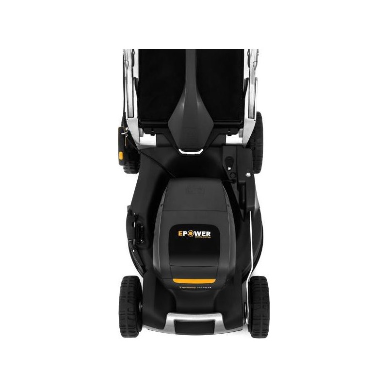 Aby zapewnić łatwe i wydajne przechowywanie posiada składaną w trzech pozycjach kierownicę a całą kosiarkę można ustawić w pionie. Zestaw nie zawiera akumulatora oraz ładowarki. Do pracy kosiarki są wymagane 2 akumulatory.