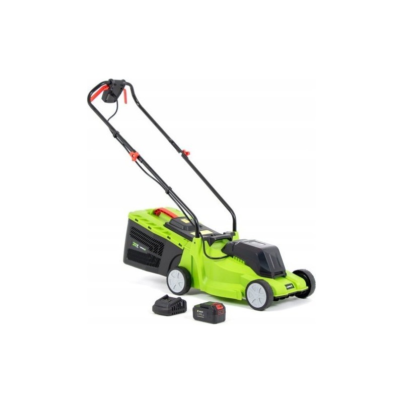 Kosiarka akumulatorowa zestaw z akumulatorem 4 Ah i ładowarką Kosiarka akumulatorowa 4Garden jest idealnym wyborem dla każdego, kto oczekuje od swoich narzędzi swobody ruchu, maksymalnej wydajności i ciągłej gotowości urządzenia do pracy, przy minimalizacji zaangażowania w jego obsługę. Ponadto kosiarka zasilana akumulatorami umożliwia koszenie bez przewodu elektrycznego, a także nie wytwarza zbędnego hałasu oraz spalin - zadbaj o zdrowie swoje i swojej rodziny. Pod względem efektywności, w żaden sposób, nie ustępuje maszynom spalinowym, zapewniając wszechstronną i idealną pielęgnację trawnika. Przyjazna dla środowiska kosiarka zasilana jest akumulatorem o pojemności 4,0 Ah. Dzięki ich zastosowaniu będziesz mógł cieszyć się dłuższym czasem działania urządzenia i jego cichą pracą. Najlepsze na rynku akumulatory litowo-jonowe dostarczają ogromną moc. Co więcej, dzięki zastosowaniu ogniw litowo-jonowych cechują się wyjątkową żywotnością i nie ulegają samoistnemu rozładowaniu – nie występuje w nich efekt straty pojemności. Zastosowana nowoczesna technologia zapewnia najlepsze parametry baterii oraz wieloletnią żywotność. Postaw na akumulator i pracuj cicho, wydajnie, bez przewodów i niepotrzebnych spalin w otoczeniu Twojej rodziny i miejsca zamieszkania. Bądź ECO! Ponadto akumulator posiada wskaźnik naładowania w postaci trzech diod LED znajdujących się na jego obudowie. Dzięki nim masz zawsze kontrolę stanu baterii oraz wiesz kiedy jest już naładowany. Co wyróżnia kosiarkę? Duży, aerodynamicznie ukształtowany kosz siatkowy z plastikową pokrywą cechujący się pojemnością 25 l przekonuje nie tylko swoim rozmiarem. Aerodynamiczne prowadzenie powietrza umożliwia optymalne wypełnienie przestrzeni kosza, a duży otwór i praktyczny uchwyt transportowy dają możliwość łatwego i całkowitego opróżniania. Koszenie staje się przejemnością! Praca bez wysiłku oraz łatwa obsługa dzięki ergonomicznie wyprofilowanemu uchwytowi. Rękojeść z miękkim uchwytem, za pomocą kilkustopniowej regulacji, można dopasować do wzrostu każdego użytkownika, przez co koszenie jest niezwykle wygodne. W standardowym wyposażeniu kosiarki znajdują się: ✔ Oryginalny karton, ✔ Akumulator litowo - jonowy AK204 (20V / 4,0 Ah), ✔ Ładowarka do akumulatora MC20, ✔ Komplet motylków do rączek, ✔ Nóż tnący, ✔ Kosz na trawę, ✔ Zestaw narzędzi montażowych, ✔ Instrukcja obsługi w języku polskim. Parametry: ✔ System akumulatorowy: 4GARDEN 20V / 2x20V ✔ Typ silnika: elektryczny, szczotkowy ✔ Zasilanie: 20V ✔ Akumulator(y) w zestawie: tak ✔ Rodzaj akumulatora: litowo-jonowy ✔ Pojemność akumulatora: 4,0 Ah ✔ Ilość akumulatorów w zestawie: 1 szt. ✔ Ładowarka w zestawie: tak ✔ Szerokość koszenia: 32 cm ✔ Sposób napędu: posuw ręczny ✔ Funkcje: wyrzut tylny, wyrzut do kosza (2w1) ✔ Regulacja wysokości koszenia: 3-stopniowa ✔ Sposób regulacji wysokości: każde koło oddzielnie ✔ Minimalna wysokość koszenia: 25 mm ✔ Maksymalna wysokość koszenia: 55 mm ✔ Obudowa: tworzywo sztuczne ✔ Pojemność kosza na trawę: 25 l ✔ Rodzaj kosza na trawę: plastikowy ✔ Łożyskowane koła: nie ✔ Wskaźnik napełnienia kosza: nie ✔ Waga: 7,2 kg Zalety: ⭐ Posiada pojemny, 25-litrowy kosz, funkcję wyrzutu tylnego oraz wyrzutu do kosza, co sprawia, że staje się niezwykle wygodna w użytkowaniu. ⭐ Duże koła chronią trawę, zapewniają lepszą trakcję oraz gwarantują łatwe poruszanie się po trawie lub nierównym terenie. ⭐ Obudowa wykonana z wysokiej jakości tworzywa zapewnia trwałość i odporność na uszkodzenia. ⭐ Solidna i kompaktowa konstrukcja sprawia, że koszenie trawy jest czystą przyjemnością!