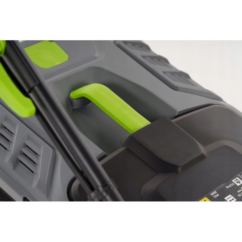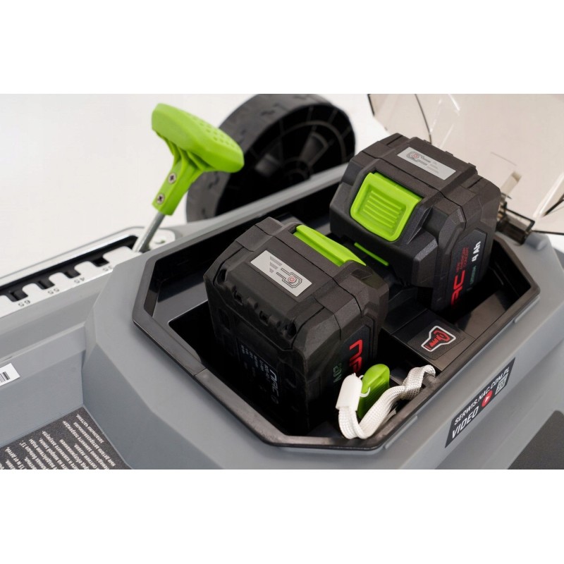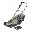 Kosiarka została wyposażona w dwa akumulatory o pojemności 4 Ah każdy, co umożliwia dłuższe sesje koszenia bez potrzeby częstego ładowania. Czas ładowania akumulatorów wynosi od 60 do 140 minut, co pozwala szybko wrócić do pracy w ogrodzie.