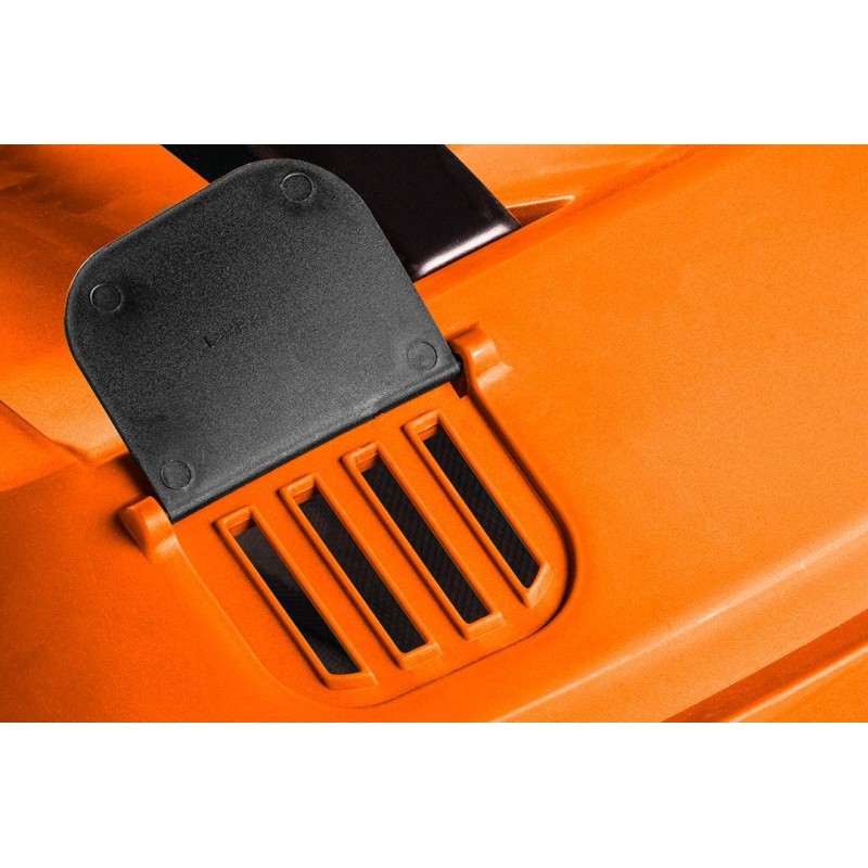 Pojemny kosz na ściętą trawę pomieści aż 40 litrów odpadków. Osłona na akumulator zabezpiecza go przed zabrudzeniem, a nowoczesna konstrukcja kosiarki gwarantuje bezpieczeństwo oraz optymalną wygodę jej użytkowania.