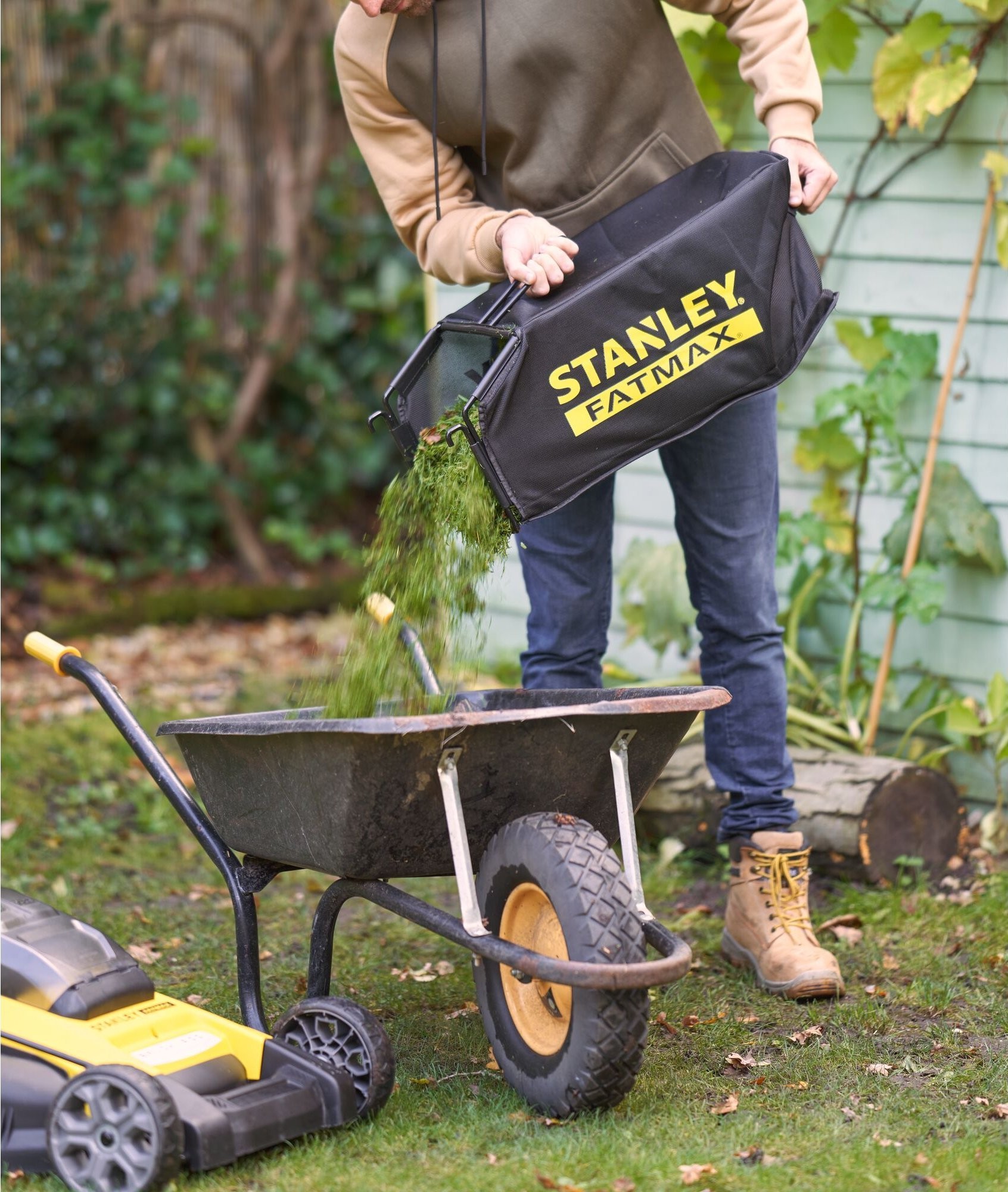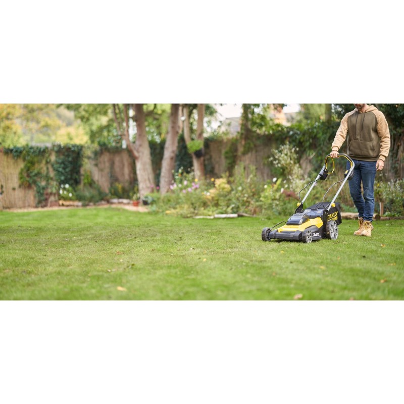 Kosiarka do trawy Stanley SFMCMWS251M-QW z niezawodnym silnikiem bezszczotkowym, który zapewnia długą żywotność narzędziu. Dzięki tylnym kołom napędzanym silnikiem użytkowanie jest bardzo wygodne. Niski profil korpusu kosiarki wprowadza możliwość koszenia trawy w miejscach trudno dostępnych. Funkcja mulczowania i zbierania do kosza poszerzają zakres zastosowań. Duży kosz na trawę umożliwia dłuższe prowadzenie działań bez konieczności robienia przerw na jego opróżnienie. Lekka, wyważona konstrukcja sprawia, że operator nie męczy się podczas koszenia. Ergonomiczny uchwyt z miękką rękojeścią można złożyć, usprawniając transport urządzenia.