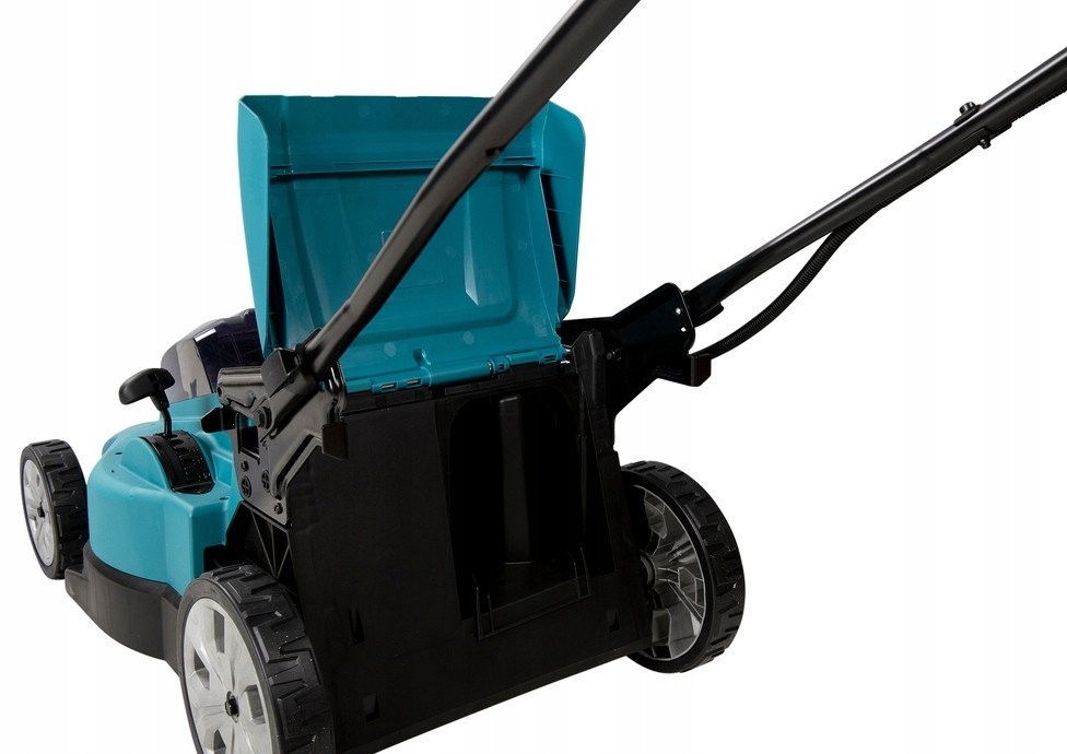 Urządzenie korzysta z podwójnego systemu akumulatorowego, co pozwala na uzyskanie mocy 36 V. Dzięki zastosowaniu akumulatorów litowo-jonowych, kosiarka oferuje długi czas pracy, wynoszący do 19 godzin na jednym ładowaniu, co czyni ją niezwykle praktycznym narzędziem do pielęgnacji ogrodu.