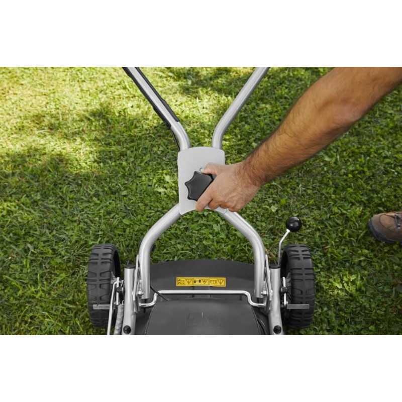 Stabilne przednie i bardzo wytrzymałe aluminiowe koła są odporne na uderzenia. Aby szybko ciąć, Multiclip Pro 950 obejmuje większą część trawnika dzięki szerokiej szerokości koszenia 48 cm. Łatwa w użyciu klawiatura z trybem ekonomicznym i sześcioma różnymi prędkościami umożliwi Ci natychmiastowe rozpoczęcie pracy. Możesz wybierać spośród pięciu różnych wysokości koszenia, dostosowanych do trawnika i pory roku. A kiedy skończysz, solidna konstrukcja pomoże Ci przenosić kosiarkę.