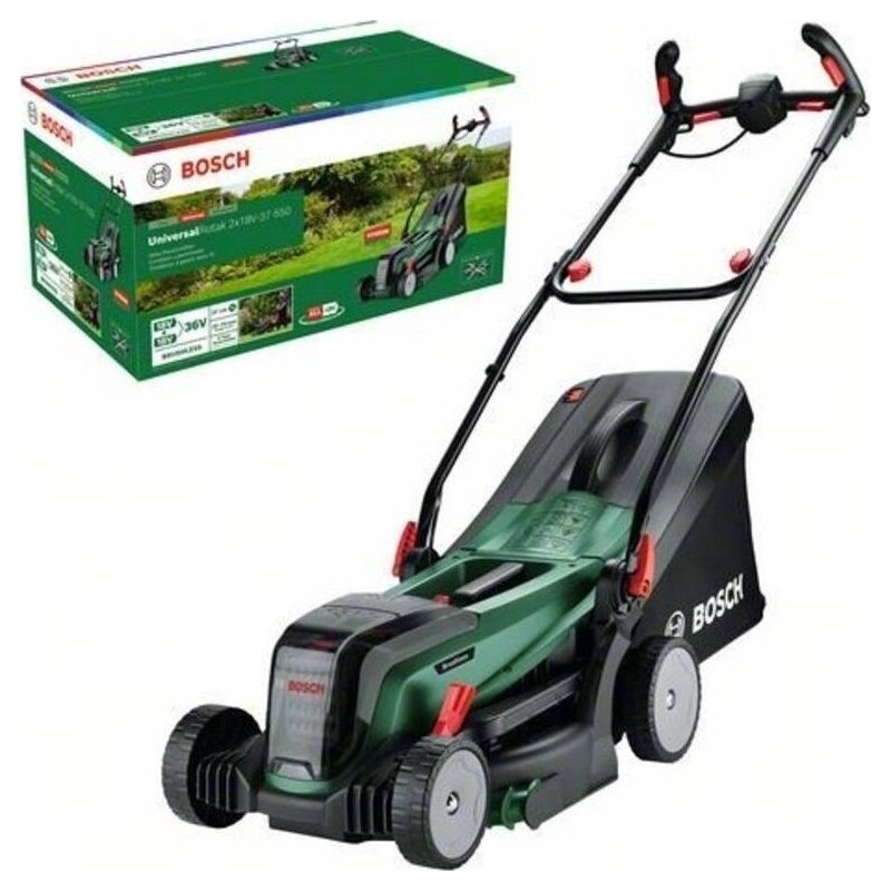 Bosch UniversalRotak 06008B9E01 to akumulatorowa kosiarka, która zapewnia wydajne i komfortowe koszenie trawników o średniej i większej powierzchni. Dzięki silnikowi bezszczotkowemu i technologii 36 V (2 x 18 V), urządzenie oferuje wysoką moc cięcia, co przekłada się na precyzyjne i równomierne koszenie. Kosiarka posiada szerokość roboczą 37 cm, a wysokość koszenia można regulować w zakresie od 25 mm do 70 mm za pomocą centralnej, pięciostopniowej dźwigni. To idealne rozwiązanie dla osób poszukujących niezawodnego narzędzia do pielęgnacji trawników.
