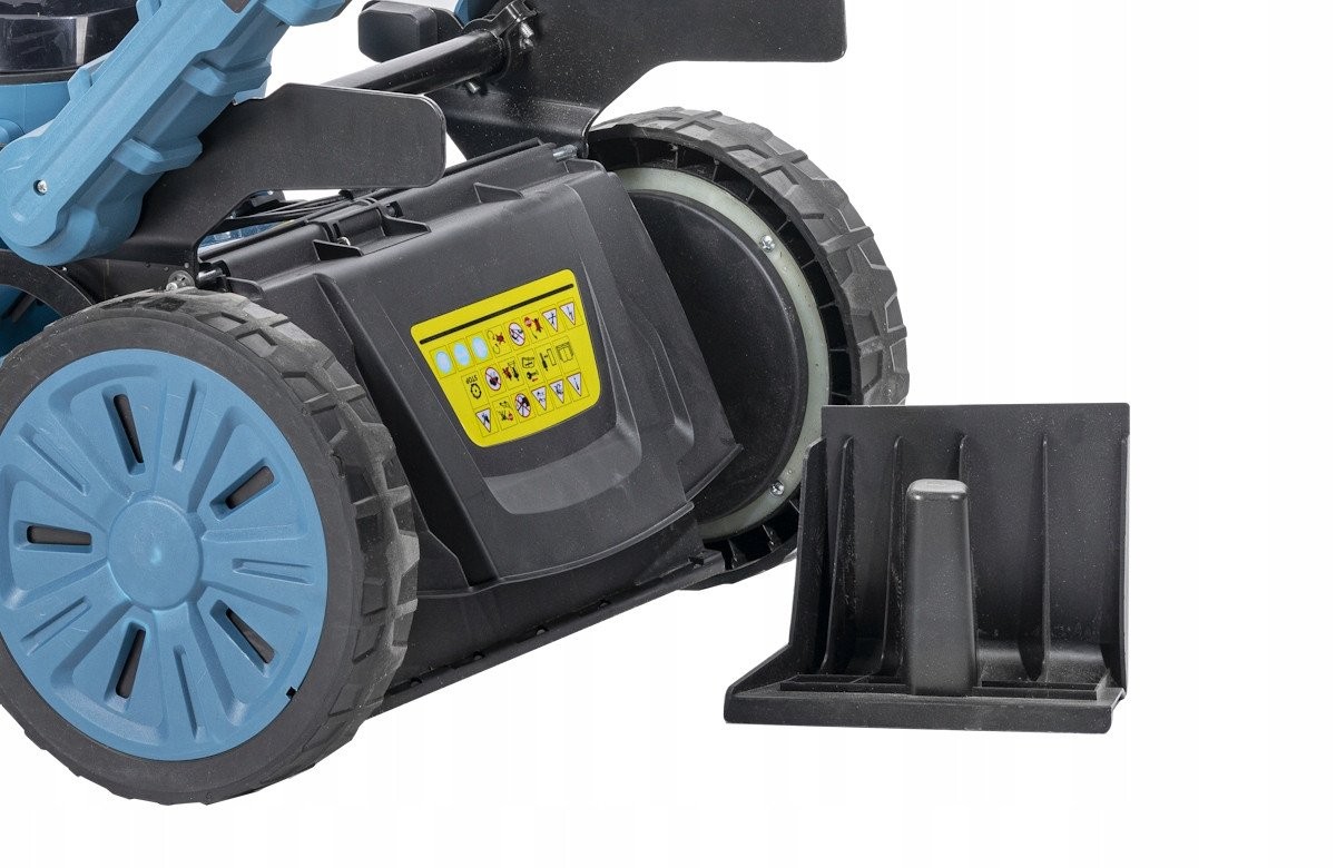 - W zestawie: 2 akumulatory 5 Ah, podwójna ładowarka, kosz na trawę, wkładka do mulczowania, uchwyt z rączką, 2 klucze do odpalania, instrukcja w języku polskim, karta gwarancyjna "door to door".