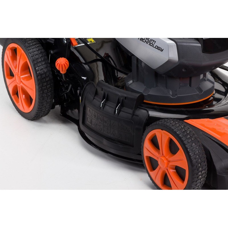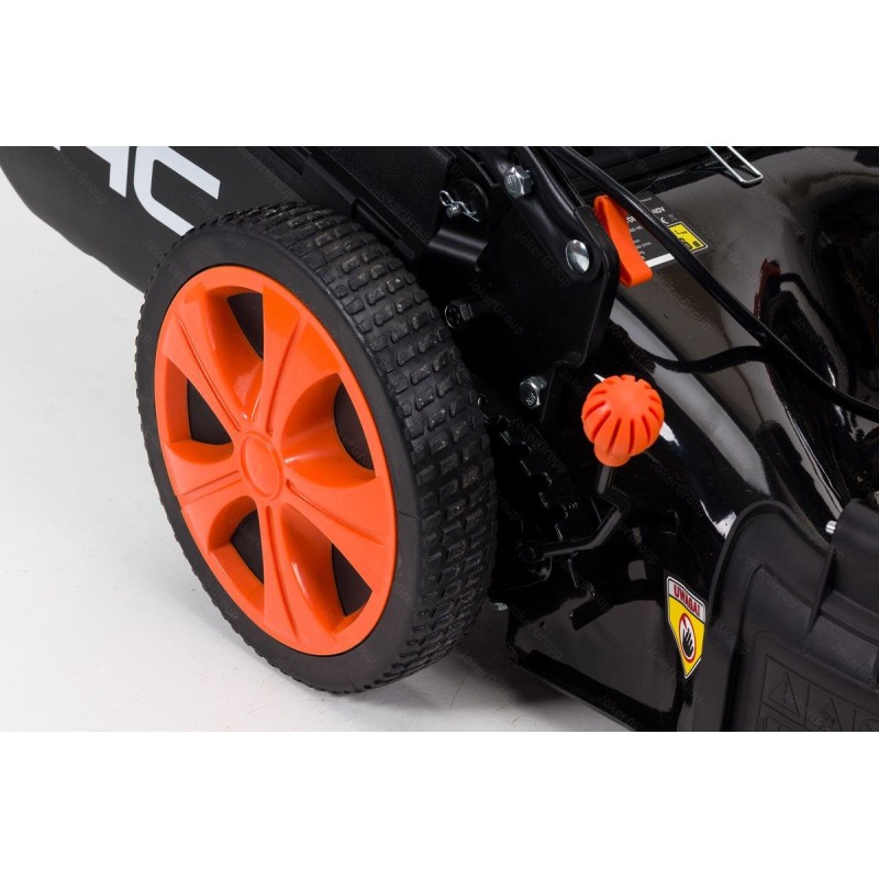 Stalowa obudowa wykonana z wysokiej jakości materiałów, zapewnia trwałość i odporność na uszkodzenia, a dzięki centralnej regulacji wysokości, jednym ruchem można wygodnie zmienić wysokość koszenia - centralnie i płynnie dzięki mechanizmowi sprężynowemu.