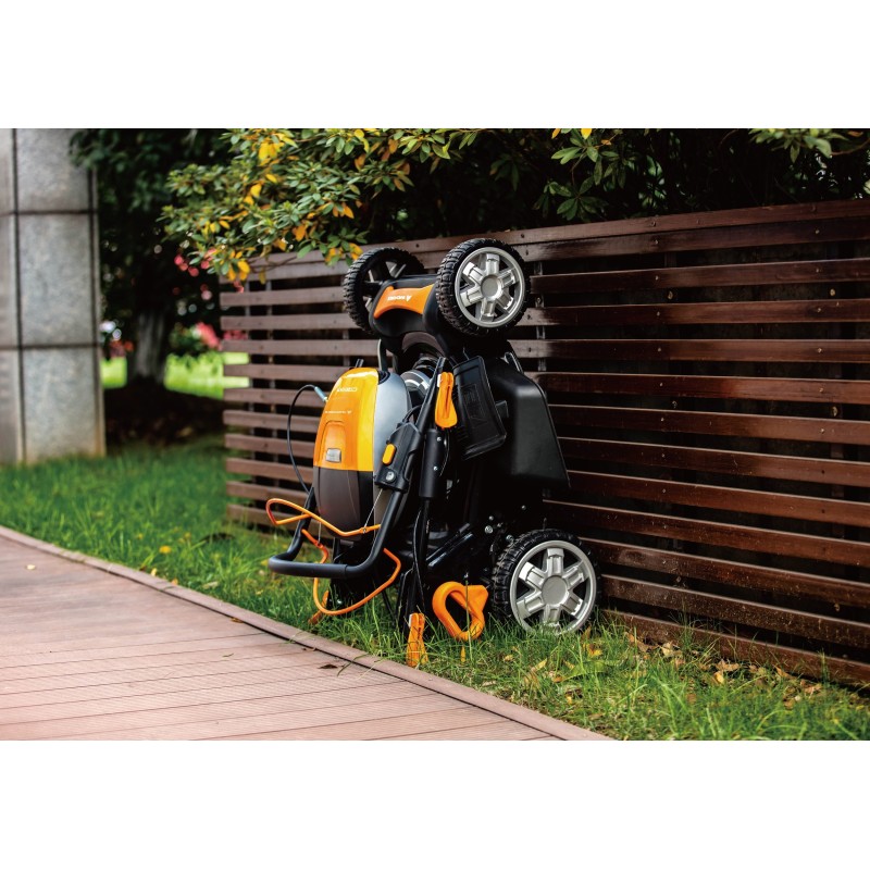 - Mechanizm szybkiego składania rękojeści ułatwia przechowywanie kosiarki, również w pozycji pionowej