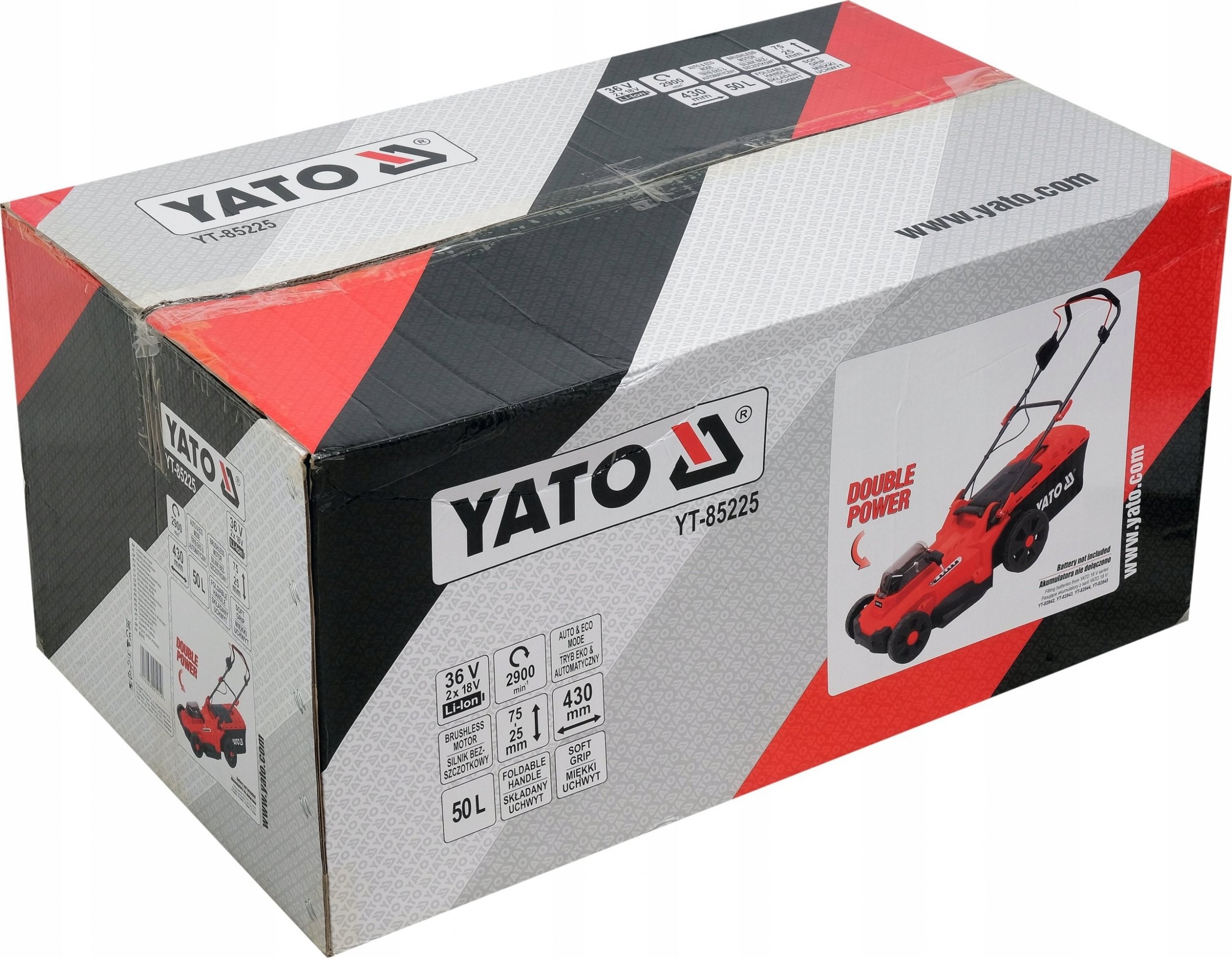 Kosiarka akumulatorowa YT-85224 36V, 43 cm - dwa akumulatory 4 Ah, podwójna ładowarka