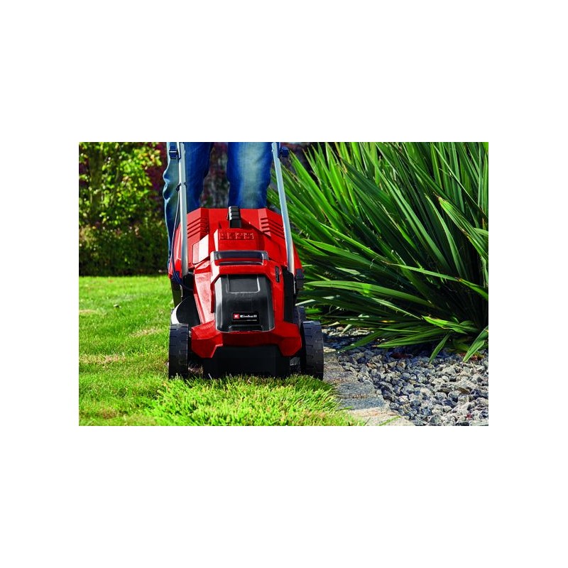 Kosiarka akumulatorowa Einhell GE-CM 18/32 Li - Solo pomaga w szybkim ukształtowaniu ogrodu – mocna, niezależna, bezprzewodowa i przyjazna dla środowiska. Kosiarka akumulatorowa jest zalecana do trawników o powierzchni do 180 m² przy szerokości koszenia 30 cm. Kosiarka posiada bezszczotkowy silnik Einhell i wysokiej jakości odporną na uderzenia obudowę z tworzywa sztucznego. Bezszczotkowy silnik w bezprzewodowej kosiarce zapewnia większą moc i działa dłużej niż konwencjonalny silnik ze szczotkami węglowymi. Do praktycznego koszenia dostępna jest 3-stopniowa osiowa regulacja wysokości koszenia. Składany długi uchwyt z miękkim uchwytem umożliwia przechowywanie na minimalnej przestrzeni. W celu ułatwienia transportu jest zintegrowany uchwyt do przenoszenia. Kosz na trawę ma pojemność 25 litrów. Duże koła mniej obciążają trawnik podczas koszenia. Akumulator i ładowarka nie wchodzą w skład dostawy i są dostępne osobno.
