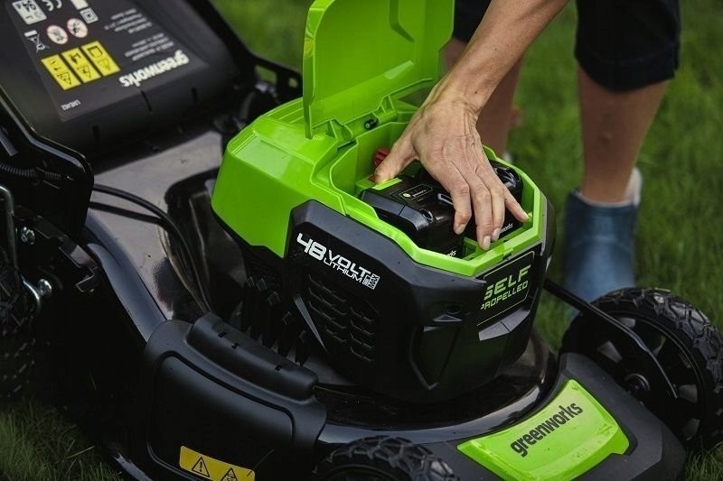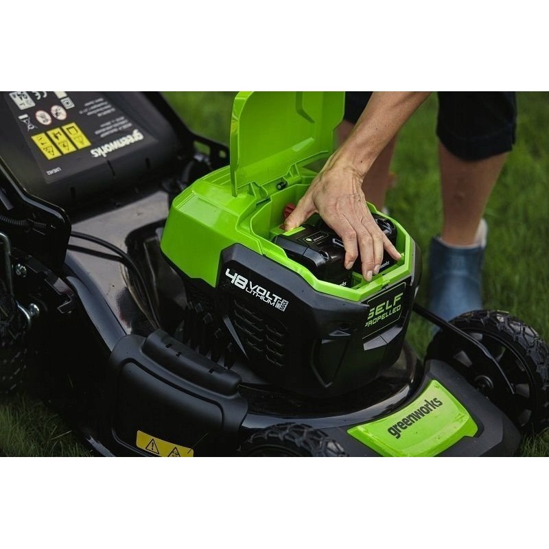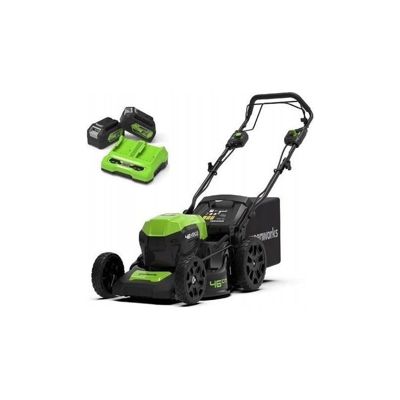 Kosiarka akumulatorowa Greenworks 2x24V z napędem 46cm G24X2LM46SPK4X zestaw ładowarka dual + 2 akumulator 4Ah