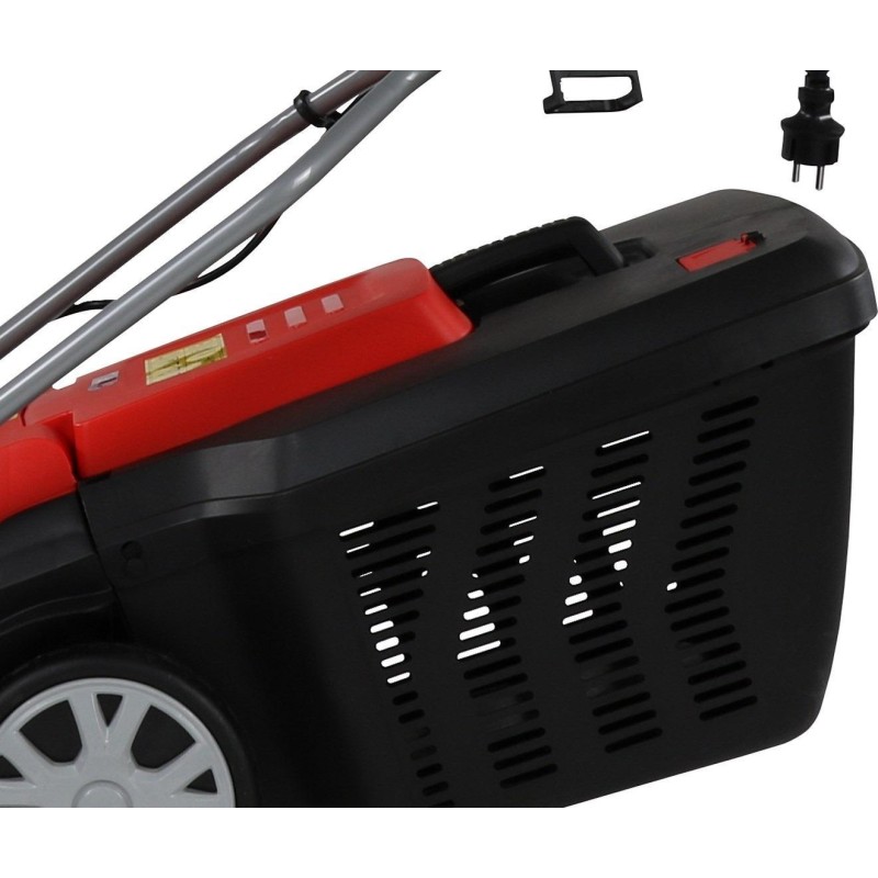 Obudowa wykonana z wysokiej jakości tworzywa, zapewnia trwałość i odporność na uszkodzenia. Niewielka waga maszyny, wynosząca zaledwie 13,5 kg gwarantuje doskonałą zwrotność i łatwość prowadzenia. Rozwiązanie to z pewnością będą chwalić kobiety, które niechętnie, jeśli w ogóle, podejmowały się pracy ciężką kosiarką spalinową. Duże koła chronią trawę, zapewniają lepszą trakcję oraz gwarantują łatwe poruszanie się po trawie lub nierównym terenie. Duży, aerodynamicznie ukształtowany kosz plastikowy cechujący się pojemnością 45 l przekonuje nie tylko swoim rozmiarem. Aerodynamiczne prowadzenie powietrza umożliwia optymalne wypełnienie przestrzeni kosza, a duży otwór i praktyczny uchwyt transportowy dają możliwość łatwego i całkowitego opróżniania. Praktyczny wskaźnik poziomu napełnienia kosza wskazuje, kiedy należy go opróżnić, aby nie nastąpiło zablokowanie kanału wlotowego.