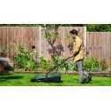 Kosiarka została wyposażona w szczotkowy silnik o mocy 1200 W z momentem obrotowym 13 Nm, zaprojektowany z myślą o optymalnym wykorzystaniu energii podczas pracy. Dzięki temu umożliwia efektywne koszenie nawet na gęstych i wilgotnych fragmentach trawnika, co pozwala zaoszczędzić czas i wysiłek. Wysoka moc utrzymuje stałą prędkość noża, oferując staranne ścinanie i szybkie wykonywanie pracy bez spadków wydajności. Silnik został wyposażony w system ochrony przed przeciążeniem, który zabezpiecza urządzenie przed uszkodzeniem podczas intensywnej pracy, co przekłada się na jego trwałość.