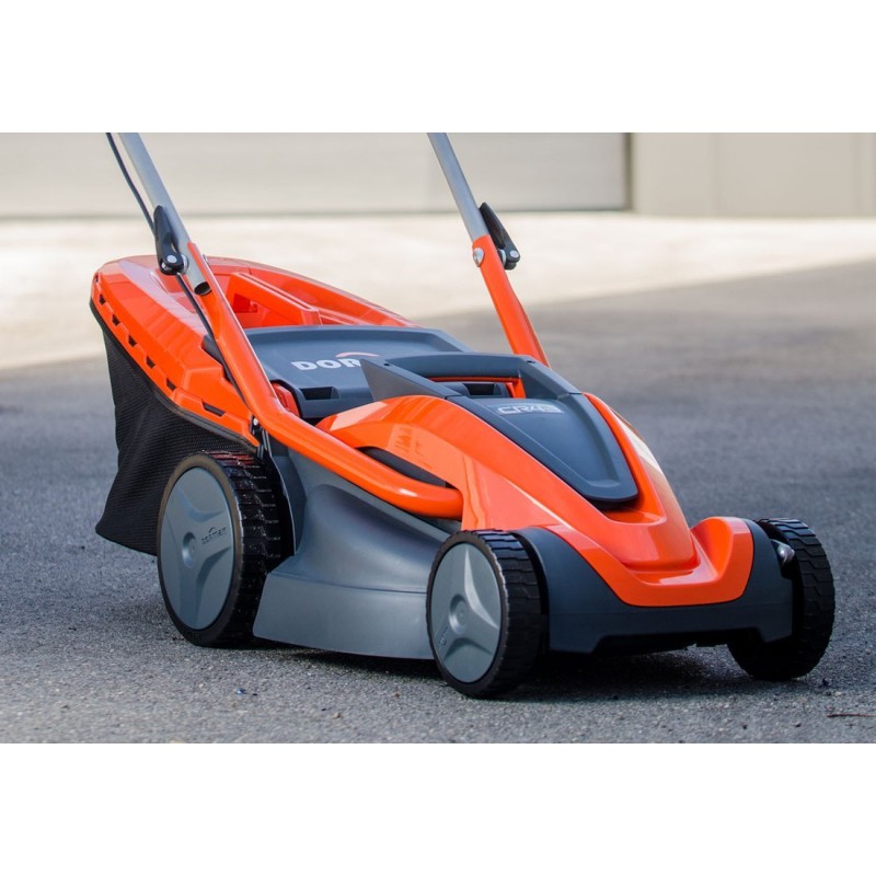 Profesjonalna kosiarka do trawy o zasilaniu elektryczny. Mocny silnik – 1600W. Duża szerokość koszenia -43cm. Mocna obudowa wykonana z tworzywa. Centrala regulacja wysokości koszenia. Duży pojemnik na trawę jak w kosiarce spalinowej.