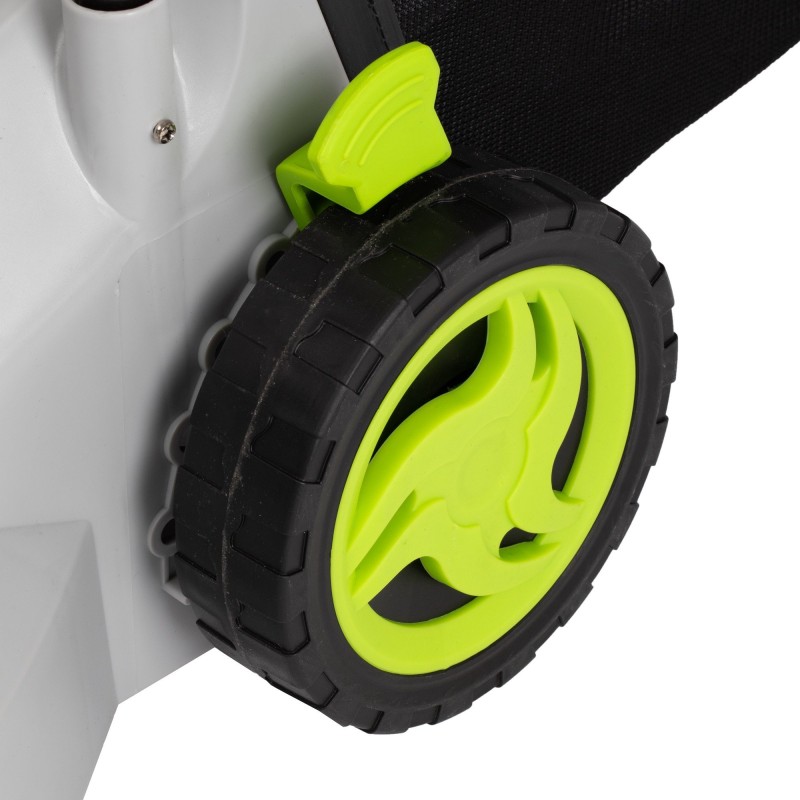 Kosiarka została wyposażona w silnik elektryczny z szczotkami, który osiąga maksymalną prędkość obrotową 3200 rpm. Dzięki temu koszenie trawnika staje się szybkie i efektywne, a Ty możesz cieszyć się pięknym ogrodem bez zbędnego wysiłku.