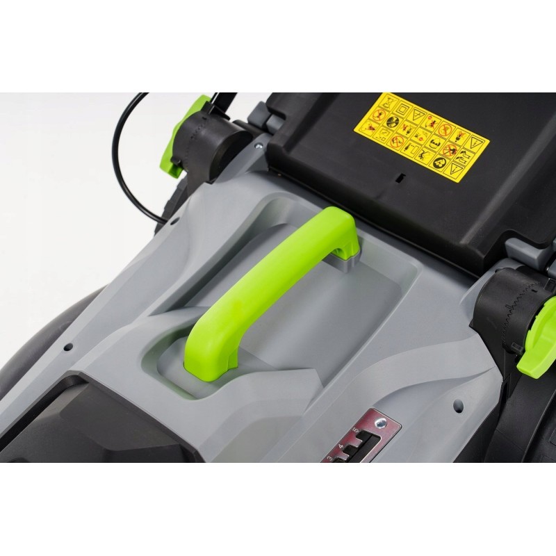 - Kosiarka posiada niezawodny, ekonomiczny silnik elektryczny o bardzo dużej mocy 1800W sprawdzający się doskonale po latach intensywnego użytkowania.