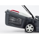 Obudowa wykonana z wysokiej jakości tworzywa, zapewnia trwałość i odporność na uszkodzenia. Niewielka waga maszyny, wynosząca zaledwie 7 kg gwarantuje doskonałą zwrotność i łatwość prowadzenia. Rozwiązanie to z pewnością będą chwalić kobiety, które niechętnie, jeśli w ogóle, podejmowały się pracy ciężką kosiarką spalinową. Duży, aerodynamicznie ukształtowany kosz plastikowy cechujący się pojemnością 27 l przekonuje nie tylko swoim rozmiarem. Aerodynamiczne prowadzenie powietrza umożliwia optymalne wypełnienie przestrzeni kosza, a duży otwór i praktyczny uchwyt transportowy dają możliwość łatwego i całkowitego opróżniania.