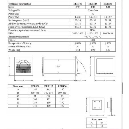 Wall-mounted recuperator E-EXTRA EER100SA, DN100, with wall switch, anthracite color. 638,78 zł Dodaj do koszyka