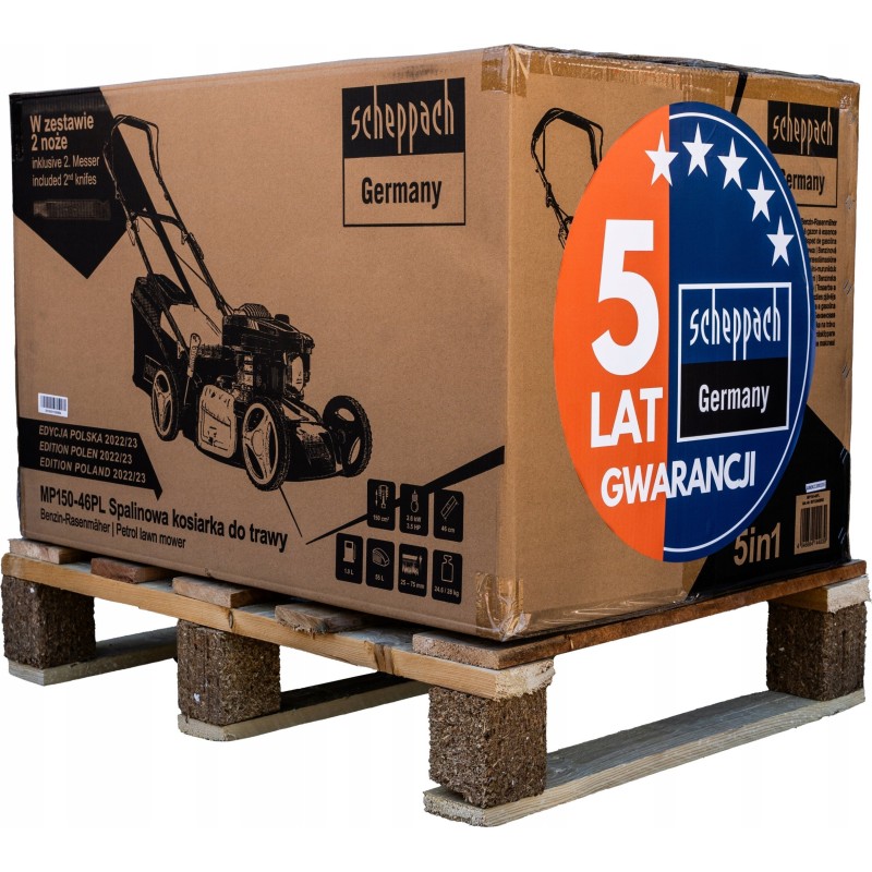 Kosiarka Scheppach MP132-42 jest dostarczana z dwoma nożami – jednym zamontowanym oraz jednym zapasowym. Dzięki temu użytkownik ma pewność, że będzie mógł kontynuować pracę nawet w przypadku uszkodzenia jednego z noży, co zwiększa wygodę i efektywność koszenia.