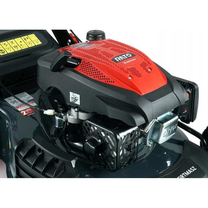Bardzo efektywna kosiarka spalinowa z napędem oraz niezawodnym silnikiem RATO o pojemności aż 223 cm3 i mocy 4,2 kW. Maszyna została wyposażona w wygodny, elektryczny rozrusznik silnika. Posiada funkcje zbierania skoszonej trawy do dużego kosza 60 litrów, funkcje wyrzutu tylnego i bocznego oraz mulczowania. Szerokość koszenia wynosi aż 53 cm.