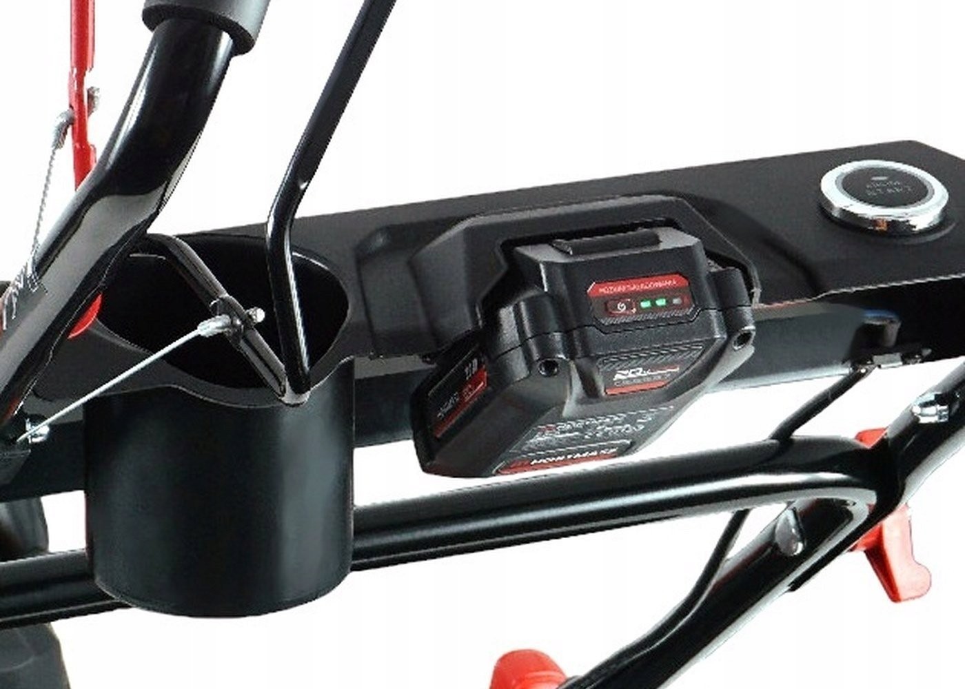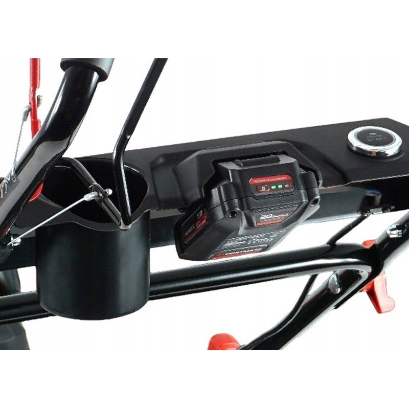 Szybkie uruchomienie kosiarki zapewnia akumulator litowo-jonowy, który można naładować w kilka chwil za pomocą zewnętrznej ładowarki. Gdy akumulator jest naładowany i zamocowany, wystarczy nacisnąć przycisk START, by włączyć kosiarkę. To eliminuje problematykę uruchamiania silnika za pomocą linki. Dzięki elektrycznemu rozrusznikowi, ponowne uruchomienie silnika po opróżnieniu kosza na trawę jest dziecinnie proste.