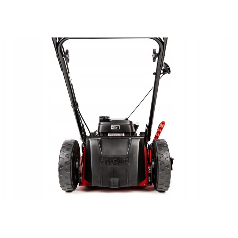 Obudowa kosiarki wykonana jest ze stali, co zapewnia jej trwałość oraz odporność na uszkodzenia. Waga 44 kg sprawia, że kosiarka jest stabilna podczas pracy, a jednocześnie łatwa do manewrowania.
