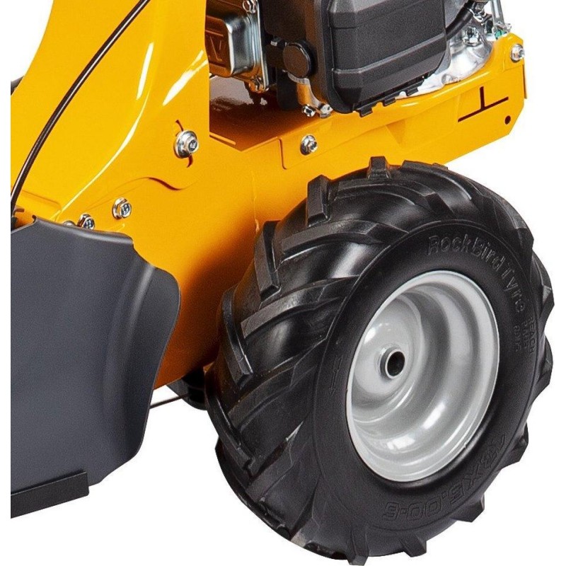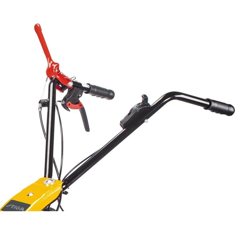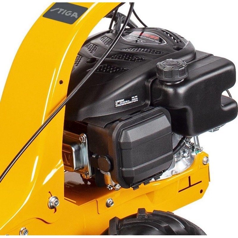 Typ silnika: spalinowy, czterosuwowy, górnozaworowy. Producent silnika: STIGA. Model silnika: ST 120 OHV. Pojemność silnika: 123 cm3. Znamionowa moc silnika: 2,2 kW. Rozrusznik: ręczny. Szerokość koszenia: 87 cm. Sposób napędu: napęd własny przekazywany na duże, gumowe koła. Średnica kół przednich / tylnych: 13x5.00-6". Cechy dodatkowe: olejowa przekładnia ślimakowa + przekładnia pasowa.
