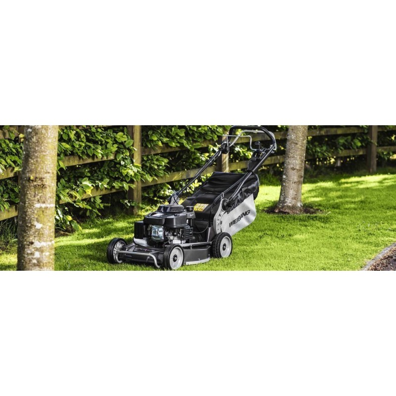 Kosiarka spalinowa Weibang WB567SK V-R wyposażona jest w niezawodny silnik KAWASAKI, o pojemności 190 cm3. Idealnie nadają się na usługi lub do prac komunalnych .Wysokość koszenia może być regulowana 7 stopniową dźwignią w zakresie 13-67 mm co daje możliwość idealnego dobrania wysokości koszenia do swoich potrzeb. Pancerna konstrukcja aluminiowego korpusu odporna na korozję wraz z aluminiowymi kołami na stalowych łożyskach kulkowych. Istotnym elementem kosiarki spalinowej Weibang WB567SK V-R jest tylna rolka ugniatająca, dzięki której możemy tworzyć pasy na trawniku. Dla większego komfortu oraz dostosowania prędkości do warunków pracy, napęd kosiarki posiada regulację. Dzięki systemowi szybkiego składania uchwytu kosiarka jest bardzo komfortowa i wygodna w przechowywaniu. Rolka ugniatająca przeznaczona do tworzenia pasów na trawie (boiska piłkarskie itp.). Rolka zastępuje również tylne koła.