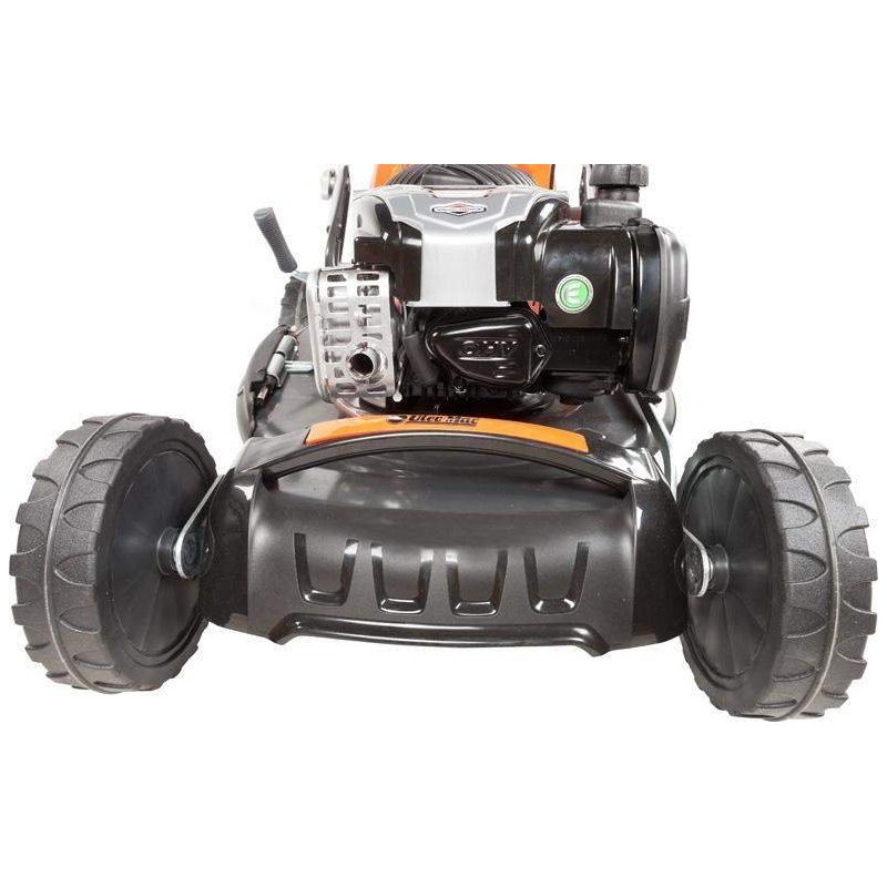- Wzmocniona i ergonomiczna dźwignia regulująca wysokość cięcia (w zakresie 5 pozycji).