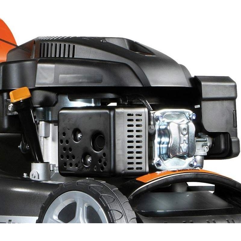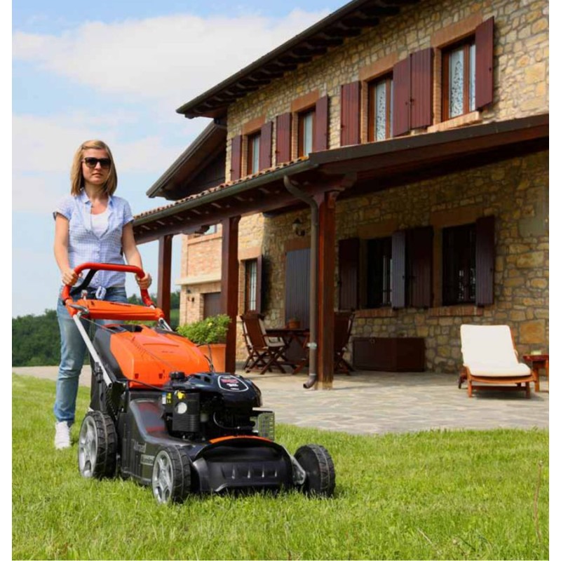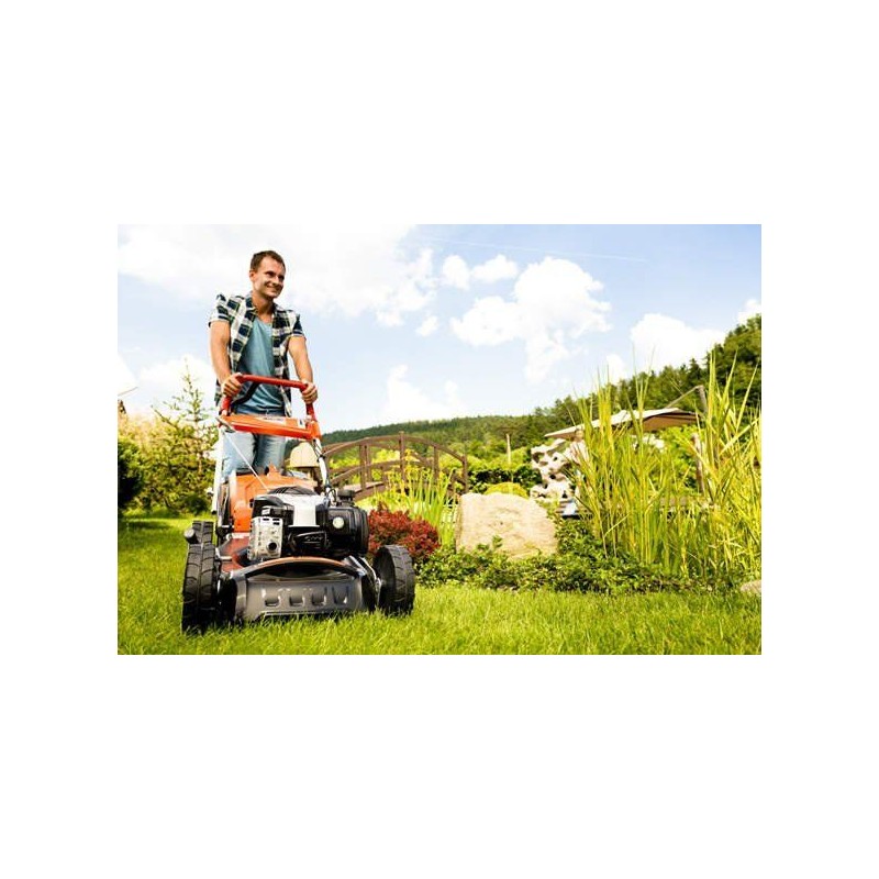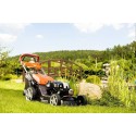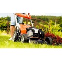 - Ergonomiczna rękojeść z 3-stopniową regulacją ułatwia operatorowi precyzyjną kontrolę kosiarki i jej wyregulowanie stosownie do własnego wzrostu.