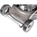 Duże koła chronią trawę i zapewniają lepszą trakcję, a podwójne łożysko kulkowe gwarantuje łatwe poruszanie się po trawie lub nierównym terenie. 3-biegowy napęd kół zapewnia optymalną wygodę podczas koszenia.