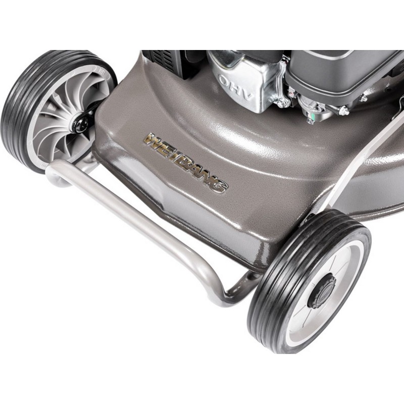 Kosiarka WEIBANG WB537SC-V-3W1 została wyposażona w profesjonalny sposób przekazania napędu na tylne koła za pomocą trwałego i solidnego wału kardana. Opatentowany sposób napędu z metalowymi kołami zębatymi pozwala na pracę w bardzo trudnych warunkach. Niewątpliwym plusem zastosowania takiego rozwiązania jest stosunkowo prosta, ale bardzo trwała konstrukcja, która tym samym nie będzie rodzić usterek typowych w napędach przy pomocy paska klinowego.