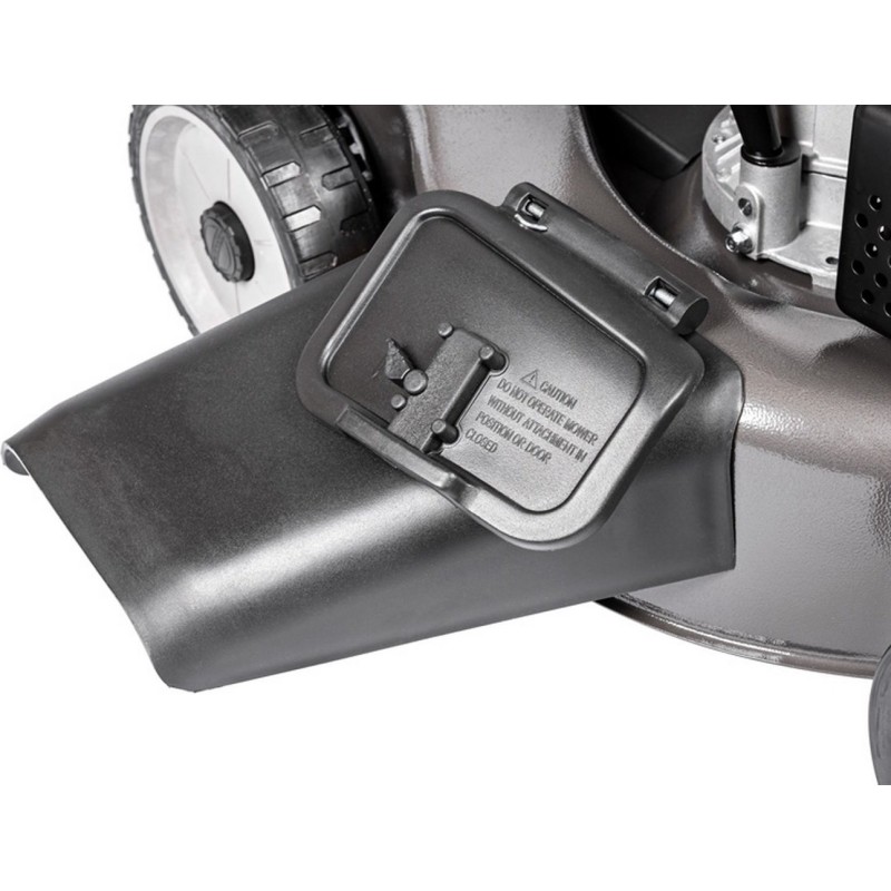Kosiarkę tę można błyskawicznie przebudować bez użycia narzędzi przez zamontowanie zaślepki do mulczowania lub wyrzutu bocznego. Dzięki dostarczonemu klinowi do mulczowania i wyrzutowi bocznemu, kosiarka oprócz koszenia i zbierania trawy do kosza, oferuje dwie dodatkowe, niezwykle przydatne funkcje.