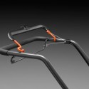 Kosiarka została zaprojektowana z myślą o wygodzie użytkownika. Ergonomiczny uchwyt z miękkim wykończeniem oraz możliwość regulacji na dwóch wysokościach sprawiają, że obsługa urządzenia jest komfortowa i mniej męcząca, co jest szczególnie istotne podczas dłuższych sesji koszenia.