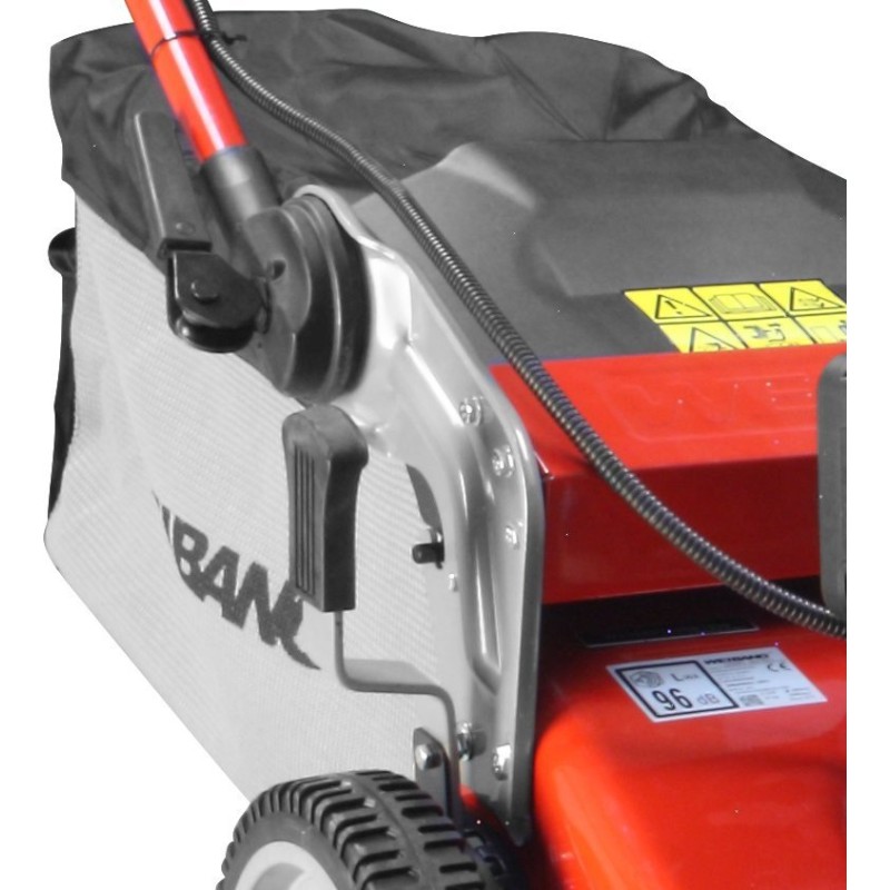 Kosiarka z elektrycznym rozruchem Weibang WB456SC VE 3IN1 posiada spalinowy silnik o pojemności 166cm3, aby go uruchomić wystarczy nacisnąć czerwony przycisk na uchwycie. Kosiarka spalinowa Weibang WB456SC VE 3IN1 zbiera trawę do pojemnego kosza 50l.