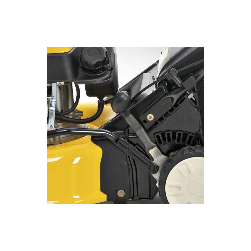 Kosiarka oferuje centralną regulację wysokości koszenia w zakresie od 2,8 do 9,2 cm, co pozwala na dostosowanie poziomu cięcia do indywidualnych potrzeb. Użytkownik ma do dyspozycji 6 różnych pozycji regulacji, co ułatwia uzyskanie pożądanego efektu.