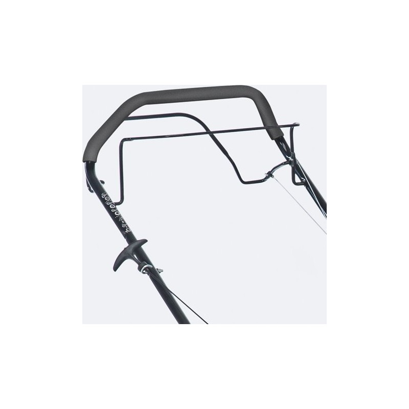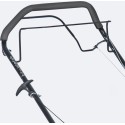 Ergonomiczny uchwyt kosiarki zapewnia pełną kontrolę nad urządzeniem oraz wygodną pozycję dłoni. Uchwyt jest w pełni składany, co ułatwia przechowywanie i transport, a możliwość regulacji wysokości dostosowuje się do potrzeb użytkownika.