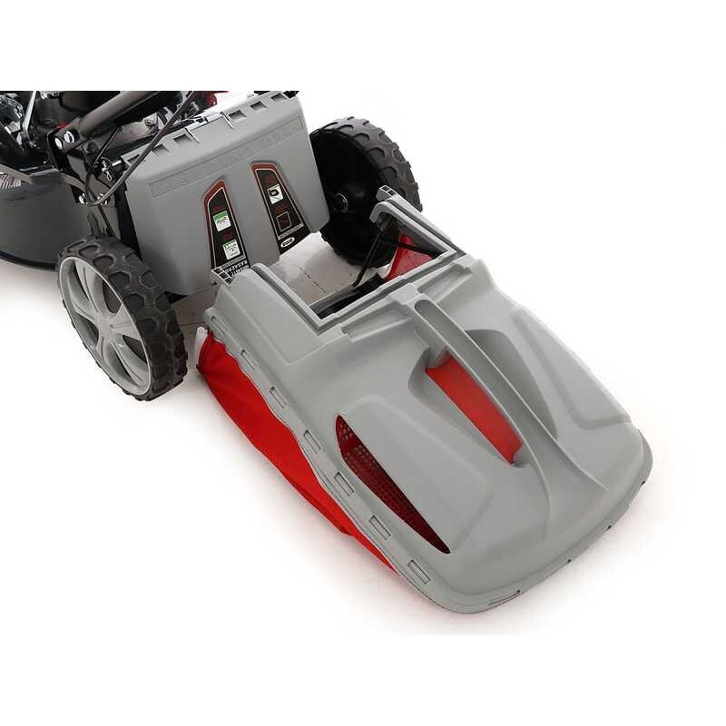 Kosiarka wyposażona jest w hybrydowy zbiornik na trawę o pojemności 60 L, który jest łatwy do usunięcia i opróżnienia. Dzięki dużej pojemności, możesz kosić większe obszary bez konieczności częstego opróżniania zbiornika.