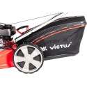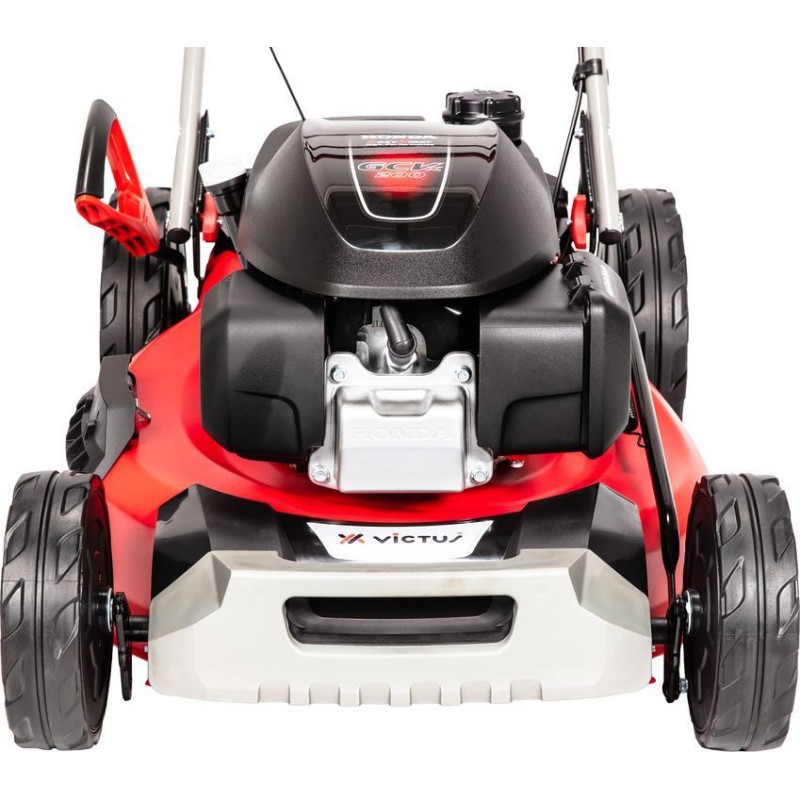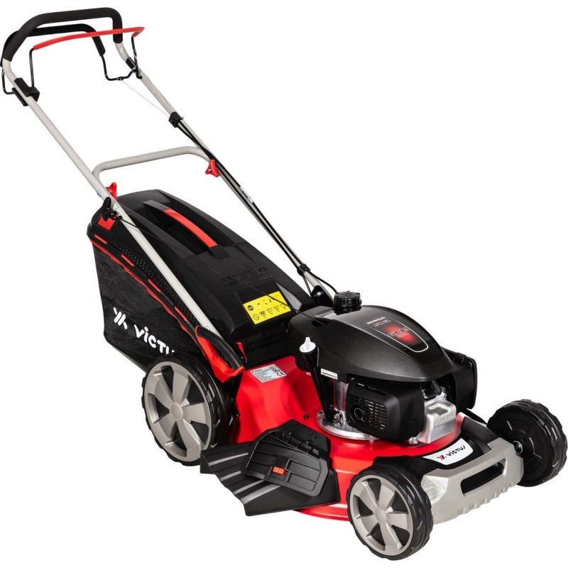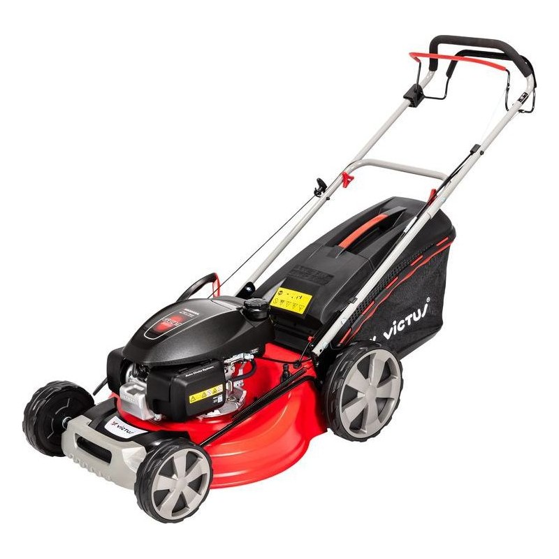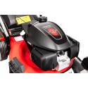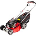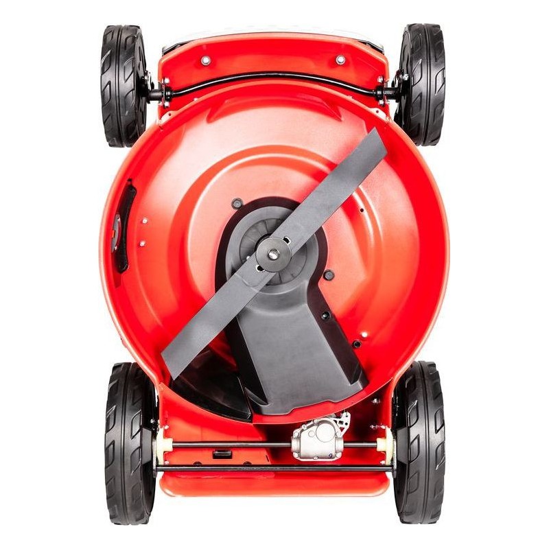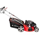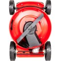 Kosiarka do trawy ze stalową obudową, o szerokości cięcia 53 cm z 3 opcjami pracy: zbieranie do kosza, boczny wyrzut i mielenie. Duże koła ułatwiają manewrowanie urządzeniem.
