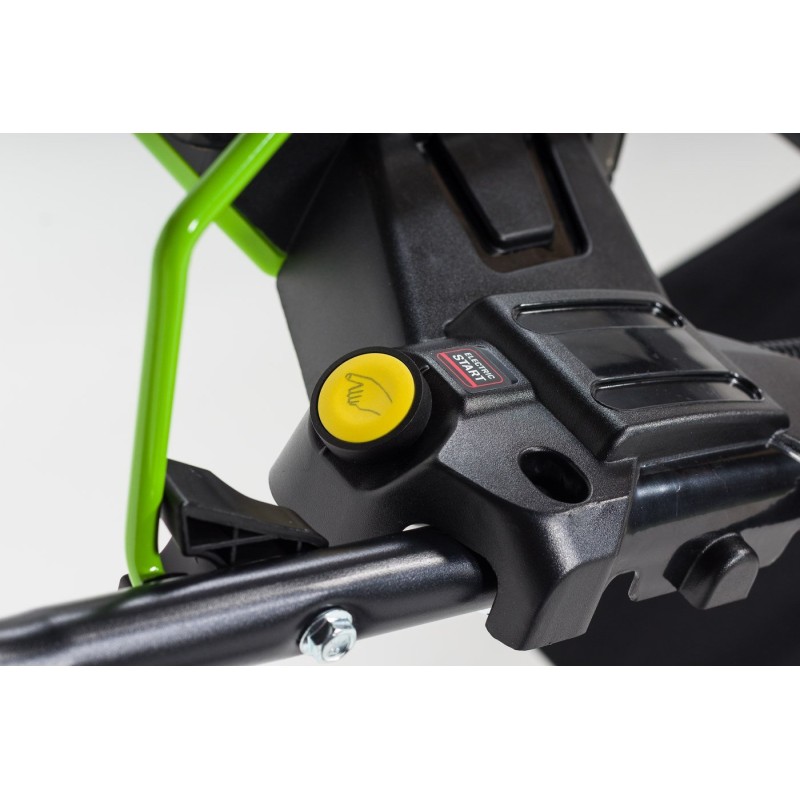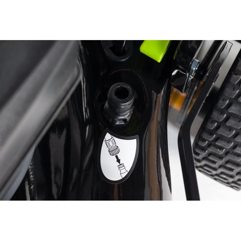 Kosiarka została wyposażona w system mycia obudowy, który umożliwia łatwe czyszczenie wewnętrznej strony korpusu. Wystarczy podłączyć wąż ogrodowy do szybkozłączki i uruchomić silnik, aby strumień wody skutecznie czyścił obudowę podczas obrotów noża.