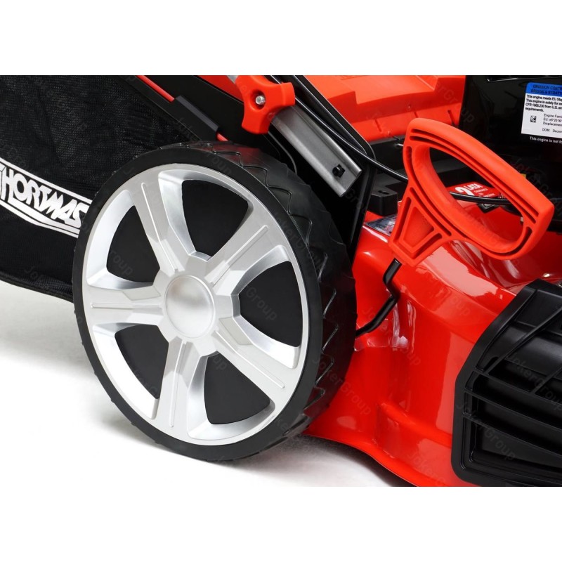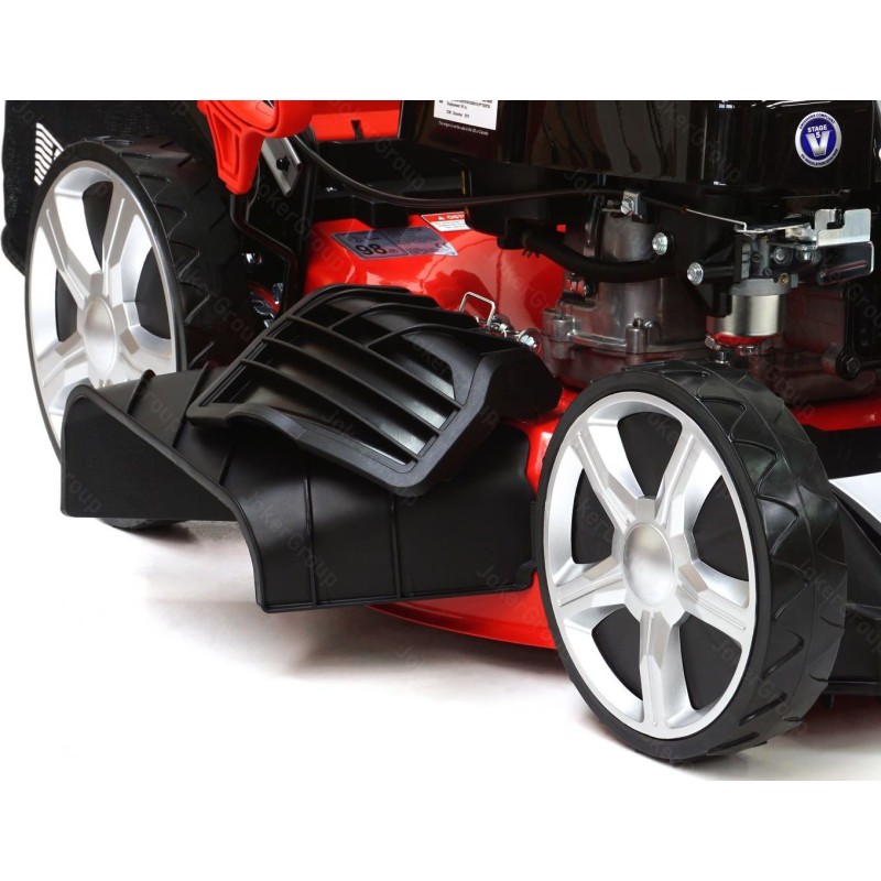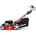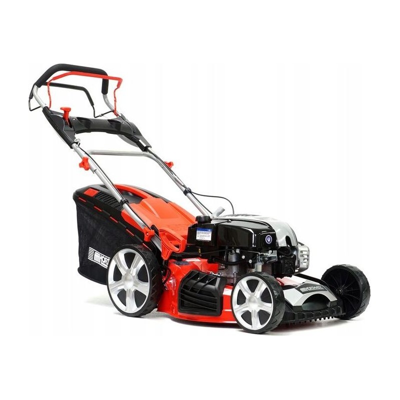 Typ silnika: spalinowy, czterosuwowy, górnozaworowy. Producent silnika: Briggs & Stratton. Model silnika: 750EX SERIES DOV Ready Start. Pojemność silnika: 161 cm3. Znamionowa moc silnika: 2,68 kW. Rozrusznik: ręczny. Szerokość koszenia: 51 cm. Sposób napędu: napęd własny na tylne koła. Rodzaj napędu: General Transmission - wzmocniona konstrukcja. Funkcje: wyrzut tylny, wyrzut do kosza, wyrzut boczny, mielenie (4w1). Regulacja wysokości koszenia: 5-stopniowa. Sposób regulacji wysokości: centralny dla wszystkich kół. Minimalna wysokość koszenia: 25 mm. Maksymalna wysokość koszenia: 80 mm. Obudowa: stalowa. Pojemność kosza na trawę: 62 l. Rodzaj kosza na trawę: siatkowy z plastikową pokrywą. Łożyskowane koła: tak. Wskaźnik napełnienia kosza: tak. Funkcja mycia obudowy: tak.