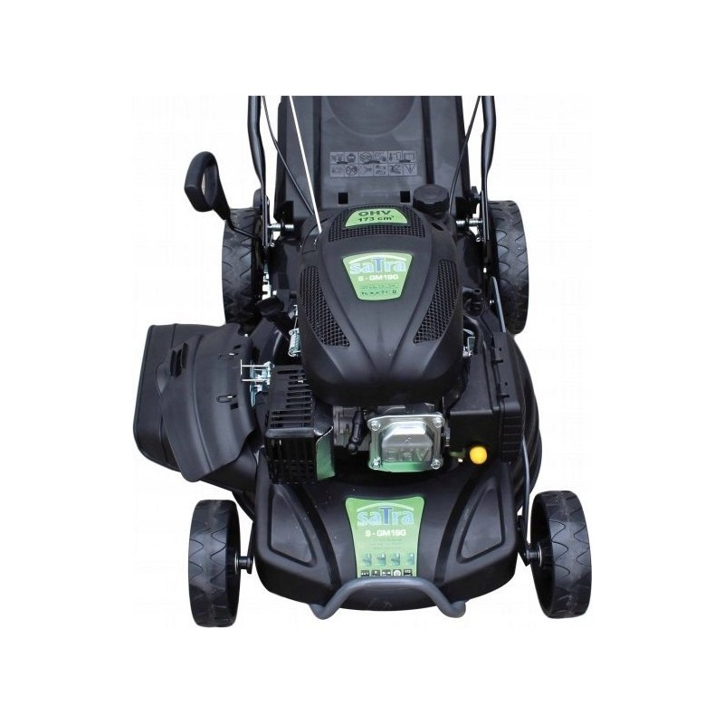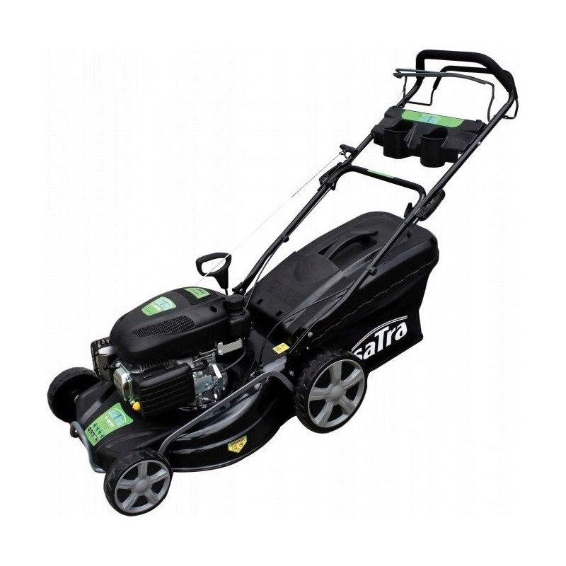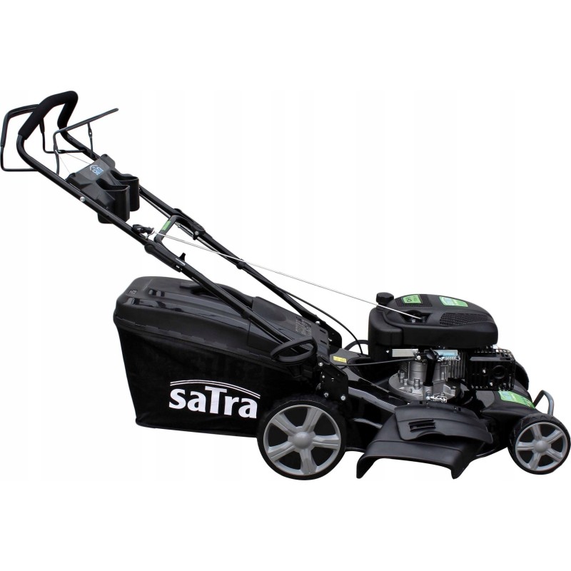 Kosiarka elektryczna marki SATRA z bardzo wydajnym silnikiem OHV SG575 zapewnia równą i efektywną pracę przy niskim zużyciu energii, a przy tym zachowując parametry emisji wymagane przez UE. Została wykonana z wysokiej jakości materiałów zapewniających wytrzymałość oraz niezawodność. Wszystkie cztery koła posiadają łożyska co umożliwia lepsze prowadzenie i wysoką jakość układu jezdnego. Systemy i funkcje w jakie została wyposażona kosiarka, ułatwią i przyśpieszą koszenie trawy co staje się przyjemnością dla osoby obsługującej. Ponadto kosiarka posiada unikalny system mycia wodą tzw. samooczyszczenie. Końcowym efektem jest nowoczesny wygląd który zapewni, że kosiarka dostosuje się do każdego otoczenia i zachwyci nie jedną osobę.
