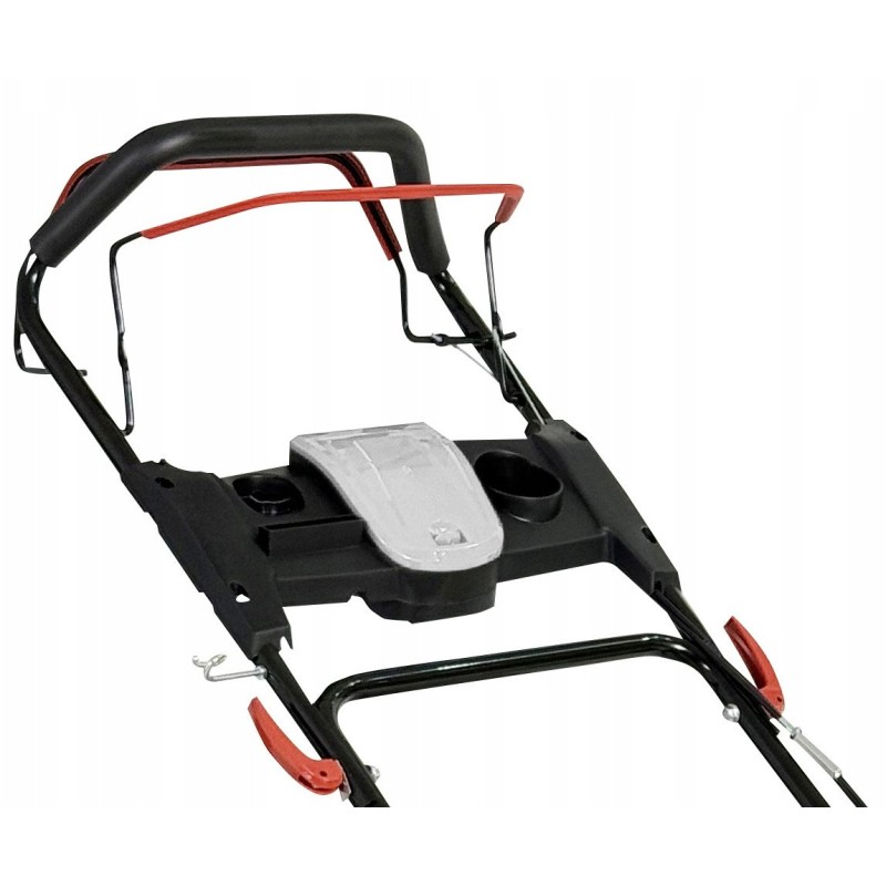Kosiarka jest wyposażona w pojemny kosz na trawę o pojemności 60 litrów, co pozwala na dłuższe koszenie bez konieczności częstego opróżniania. Dodatkowo, wskaźnik zapełnienia informuje o konieczności opróżnienia kosza, co zwiększa komfort użytkowania.