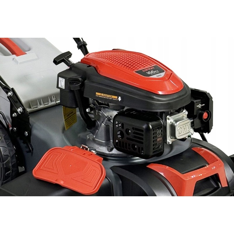 Wyposażona w silnik LONCIN o pojemności 166 cm³, kosiarka generuje moc 2,9 kW, co zapewnia jej znakomite osiągi. Dzięki maksymalnemu momentowi obrotowemu wynoszącemu 9,5 Nm, urządzenie radzi sobie nawet w trudniejszych warunkach, gwarantując płynne i efektywne koszenie.