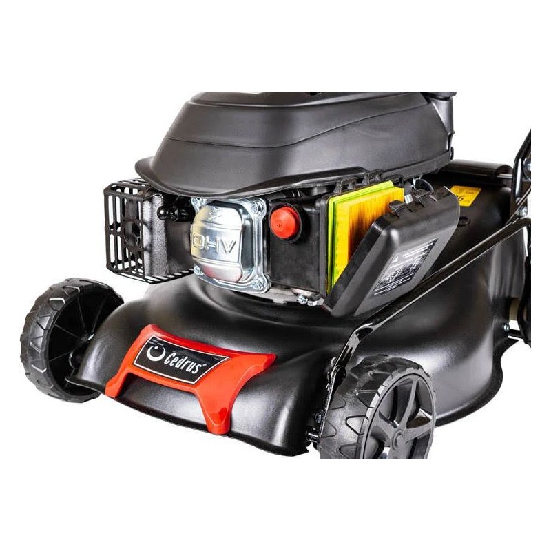 Kosiarka spalinowa Cedrus KS42 wyposażona w mocny silnik o mocy 4,2 KM przy obrotach 2800obr/min i pojemności 139cm³. Kosiarka wyposażona jest w stalowy układ roboczy o szerokości 42 cm z jednym nożem. Wysokość koszenia regulowana jest centralnie za pomocą jednej dźwigni i posiada 6 stopni regulacji w zakresie 25-75 mm. Kosiarka spalinowa Cedrus KS42 może zbierać trawę do kosza o pojemności 45l lub po ją mulczować. Kosz wyposażony jest we wskaźnik napełnienia.