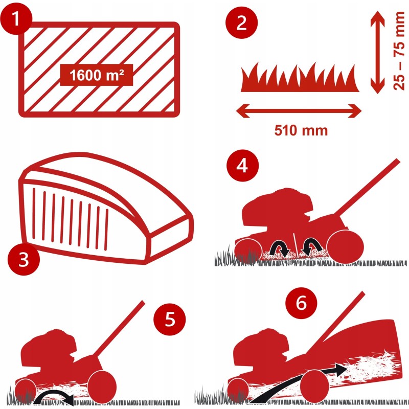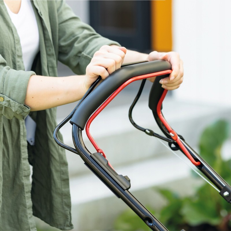 Kosiarka Scheppach MS173-51 została zaprojektowana z myślą o komforcie użytkownika. Ergonomicznie ukształtowany uchwyt z miękkim wykończeniem zapewnia pewny chwyt i zmniejsza zmęczenie dłoni podczas dłuższej pracy. Składany uchwyt ułatwia przechowywanie i transport kosiarki. Duże koła, w tym tylne napędzane (jeśli model posiada napęd), zapewniają płynne poruszanie się po nierównym terenie i zwiększają manewrowość urządzenia.