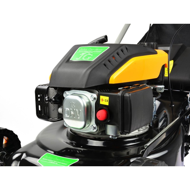 Kosiarka spalinowa John Gardener o symbolu G83055 to urządzenie o szerokości roboczej 40 cm. Posiada nowoczesny, górnozaworowy silnik spalinowy o mocy maksymalnej 3.5 KM i pojemności 99 cm3. Uzyskuje prędkość obrotową na poziomie 2800 obr/min.