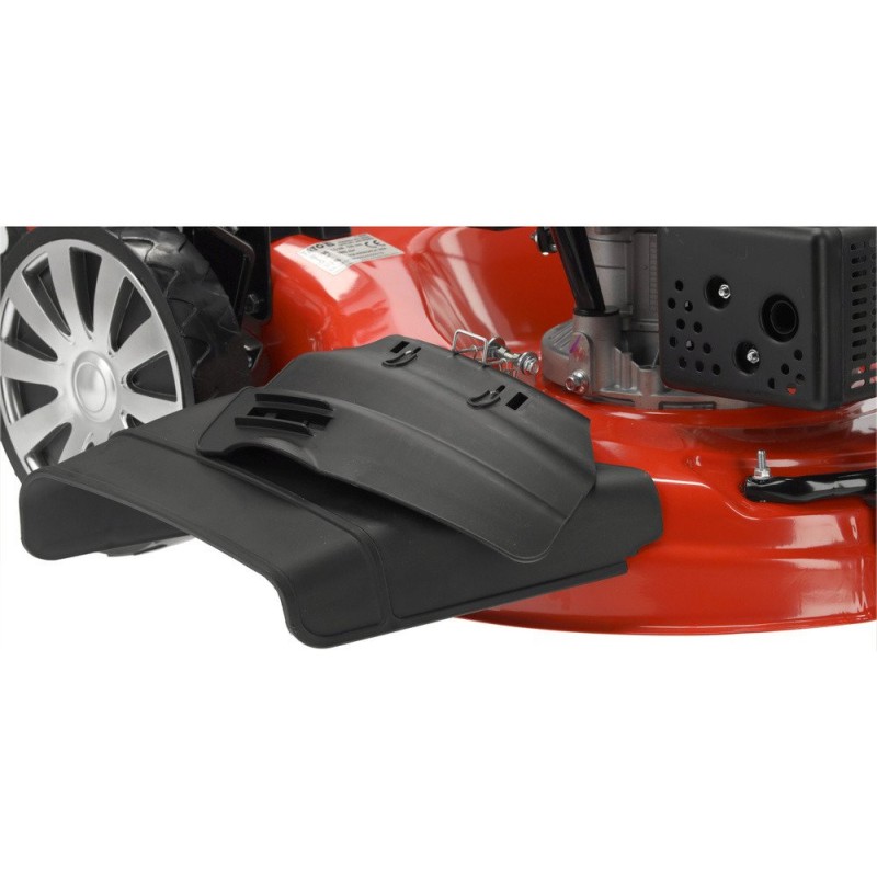 - Funkcje: mulczowanie, wyrzut boczny, wyrzut tylny, zbieranie trawy do kosza