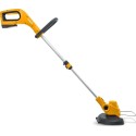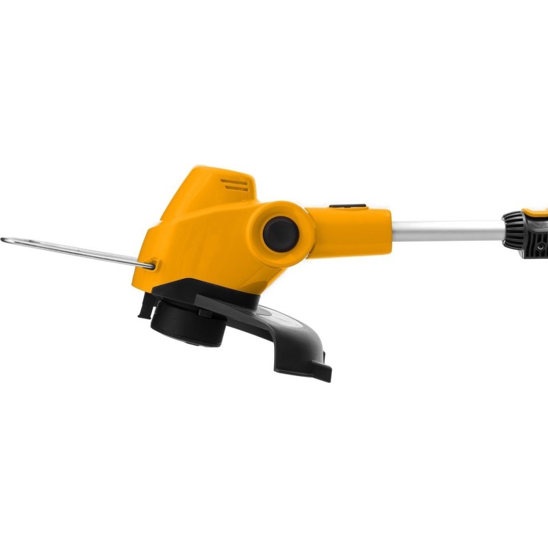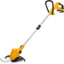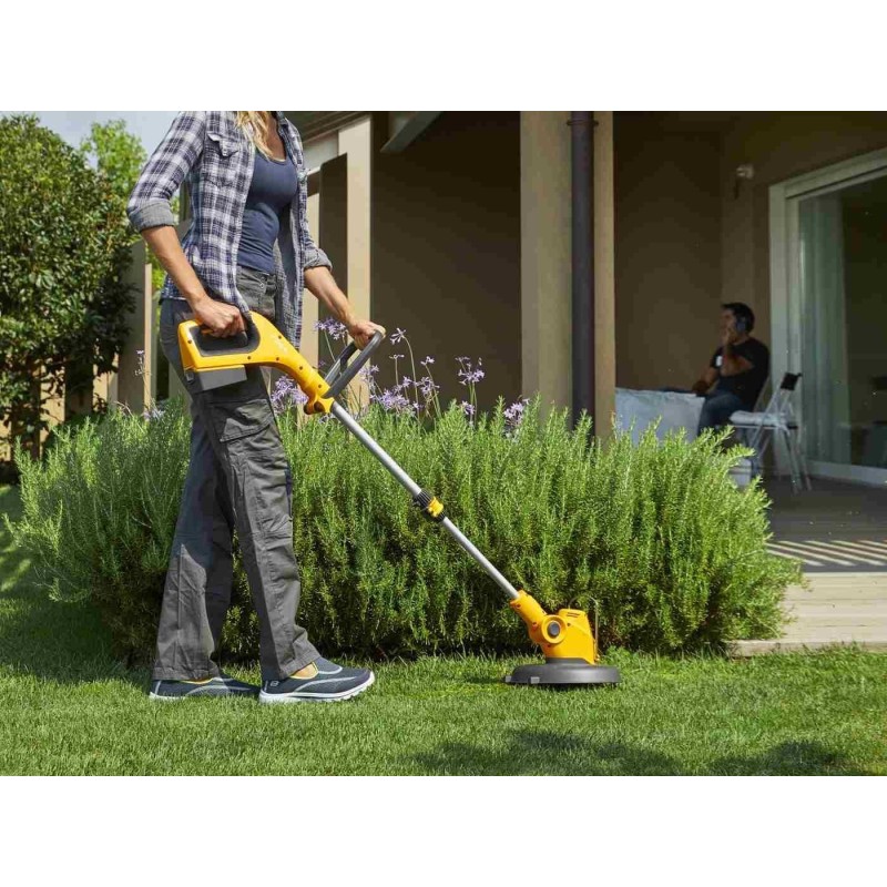 System akumulatorowy: ESSENTIAL SERIA 1. Typ silnika: elektryczny, szczotkowy. Zasilanie: 20V. Akumulator(y) w zestawie: tak. Rodzaj akumulatora: litowo-jonowy. Pojemność akumulatora: 2,0 Ah. Ilość akumulatorów w zestawie: 1 szt.. Ładowarka w zestawie: tak. Maksymalna prędkość obrotowa: 8000 obr/min. Średnica koszenia głowicą żyłkową: 250 mm. Rodzaj głowicy: pojedyncza żyłka. Kąt cięcia: regulowany - funkcja dokaszania krawędzi. Uchwyt: typu pętla. Uchwyt antywibracyjny: nie.