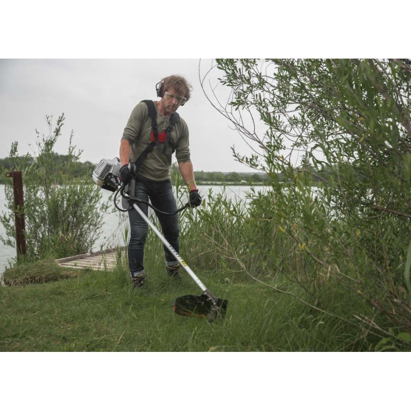 Dzięki optymalnemu rozkładowi ciężaru i wygodnym, podwójnym szelkom nośnym, praca z użyciem prezentowanej kosy spalinowej idzie jak z płatka. Szelki zapewniają odpowiednią dystrybucję obciążenia na barki i plecy operatora. Zmniejszają zmęczenie i zapewnia niezwykły komfort pracy.