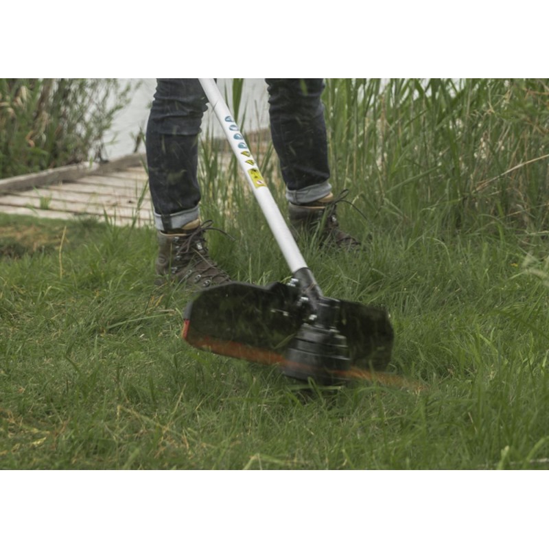 Głowica wyposażona jest w automatyczny system wysuwania żyłki. Dzięki temu praca kosą jest niezwykle wygodna, niewymagająca niepotrzebnego wysiłku. Koszenie z użyciem głowicy żyłkowej to doskonałe rozwiązanie do wyrównywania krawędzi trawnika i prac wykończeniowych wokół drzew, ścieżek w ogrodzie, powierzchni wzdłuż murów lub pod ławkami ogrodowymi.